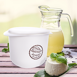 Výroba tvarohu je opravdu jednoduchá, u nás najdete šikovnou nádobu s vloženým sítkem k odkapání syrovátky, která pomůže s domácí výrobou jemného tvarohu nebo smetanového sýra.