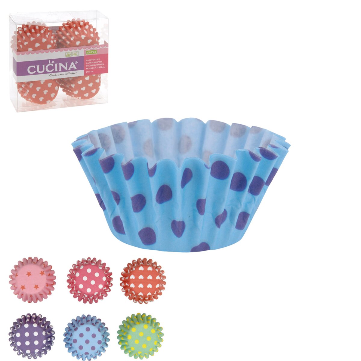 Kód produktu 120020Košíček cukrářský - vynikající pro pečení i servírování nejen sladkých pokrmů, ale také slaných dobrot. Na pečené i nepečené dezerty. Ideální pro cukroví, čokoládové bonbóny, pralinky, mini muffinky a další dobroty. Assort dekorů a barev. Materiál: pečící papír - lze použít do 220 °C. Sada 200 ks. Rozměry: pr. dna 2,5 cm, v. 1,7 cm.