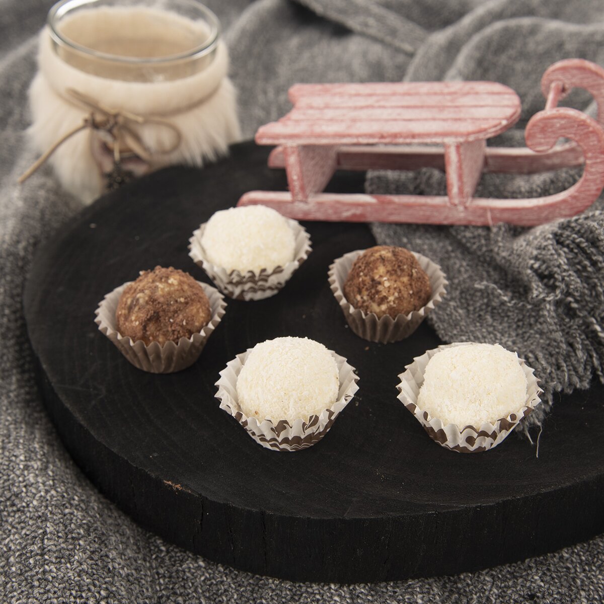 Kód produktu 12323860 ks cukrářských papírových košíčků s moderním potiskem. Průměr dna košíčku je 2,5 cm pro pohodlné pečení drobných dezertů, ale i servírování nepečených sladkých kuliček nebo čokolády.