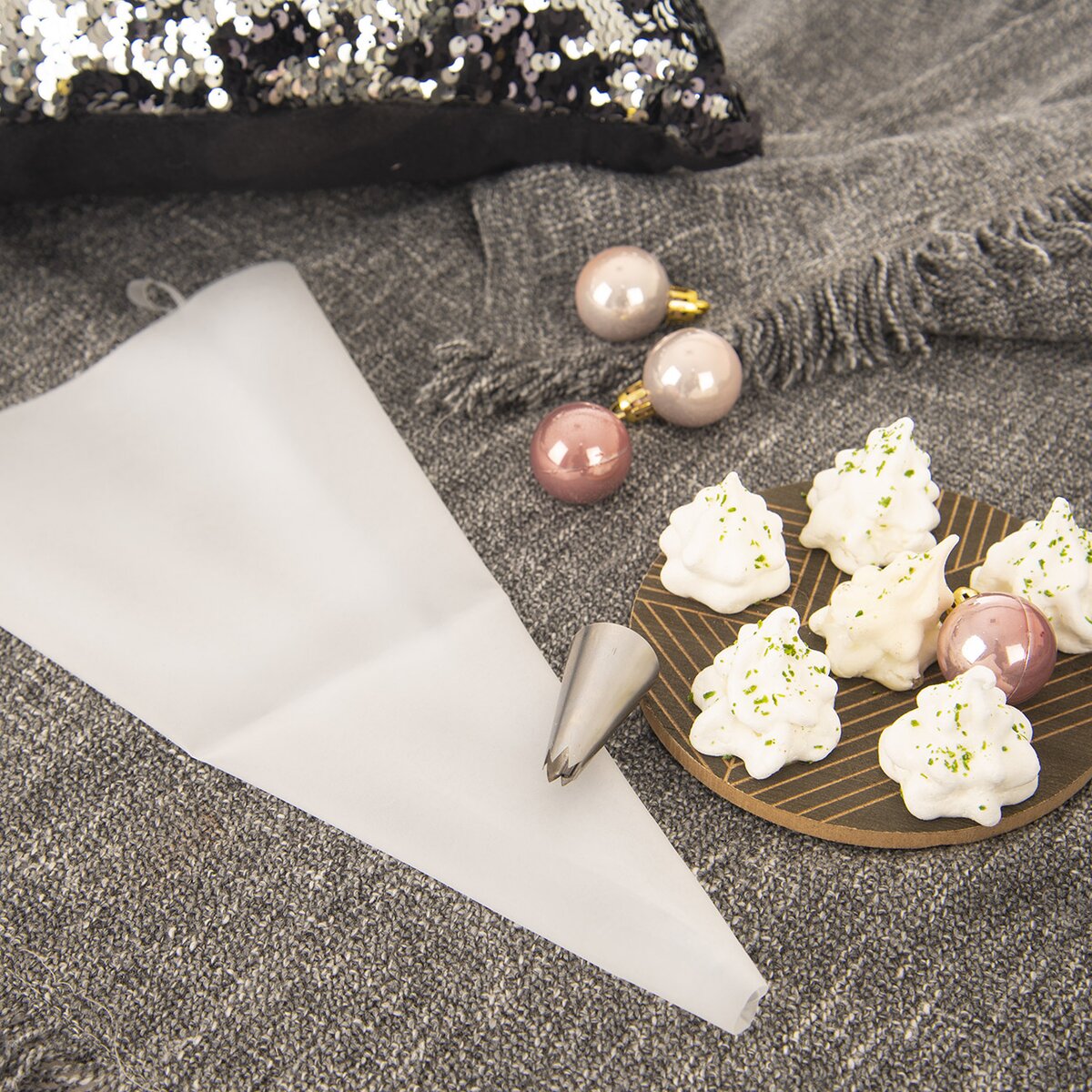 Sáček délky 45 cm je vyroben z plastu, takže nedojde k prosakování náplní. Navíc jej lze zastřihnout podle průměru nejpoužívanějších špiček. Jednoduchá údržba, stačí umýt teplou vodou se saponátem.