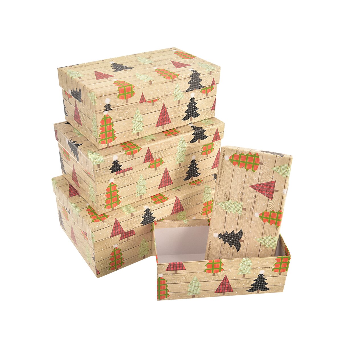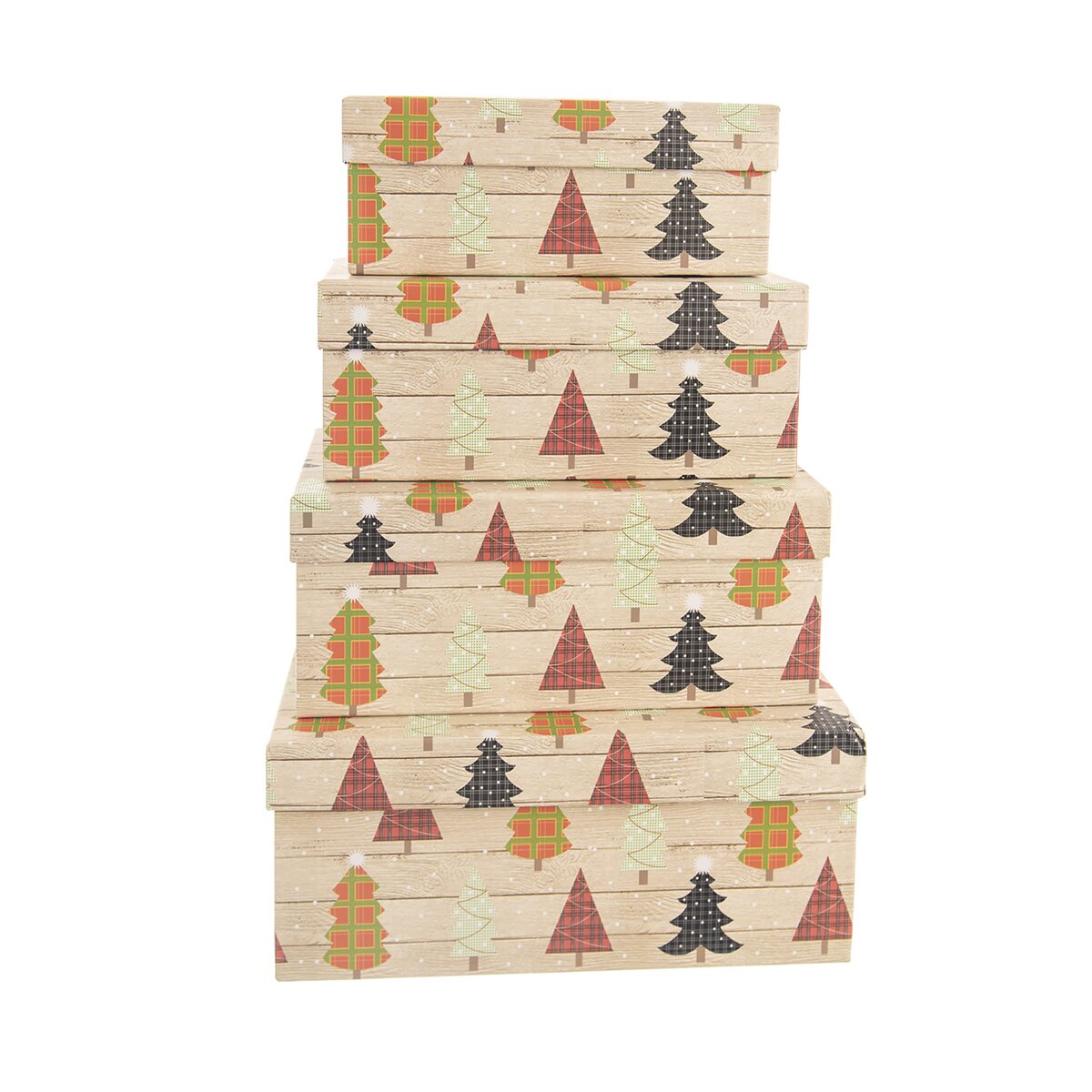 Kód produktu 822711Sada čtyř papírových dárkových krabic s barevným vánočním motivem. Každá krabice má jiný rozměr a vlastní víko.
