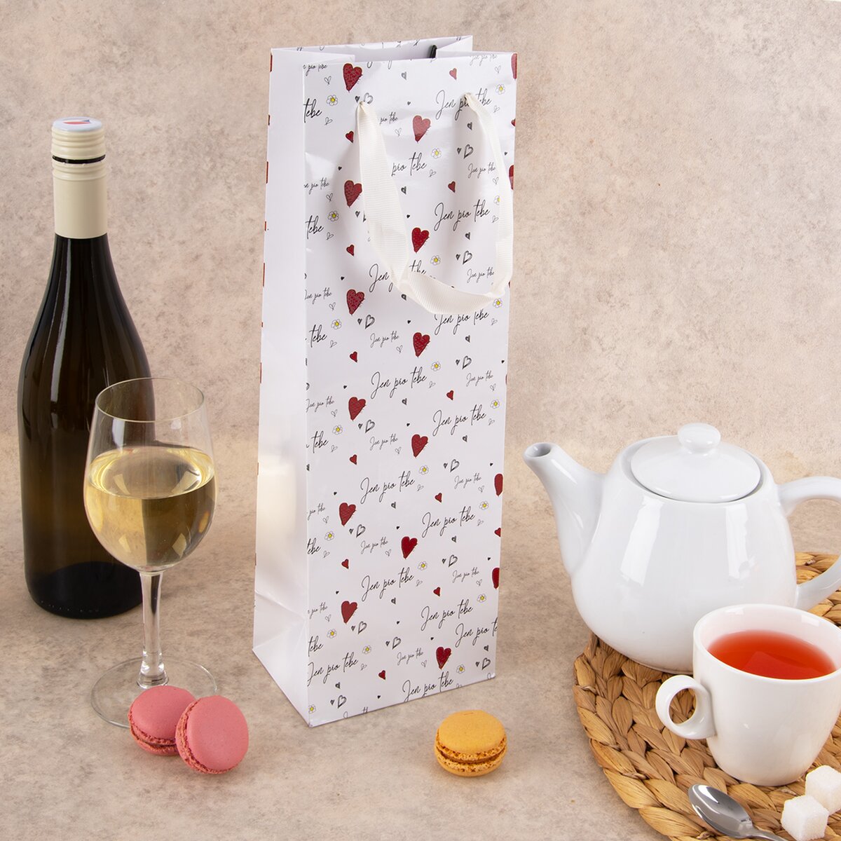 Kód produktu 822776Papírová dárková taška na víno JEN PRO TEBE o rozměrech 12x8,5x36 cm s originálním potiskem je vhodná k uložení nejrůznějších "tekutých" dárků.