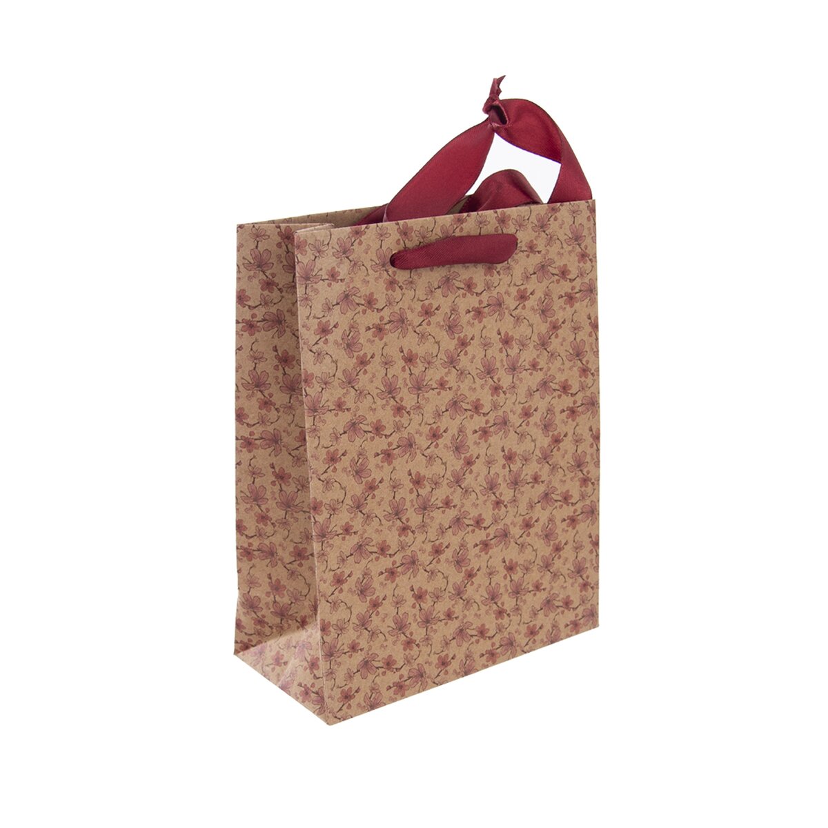 Kód produktu 822661Papírová dárková taška o rozměrech 18×23 cm s potiskem drobných květů.