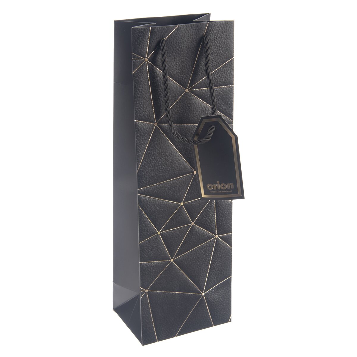 Kód produktu 822733Papírová dárková taška na víno o rozměrech 12x9x36 cm v luxusním černém provedení.