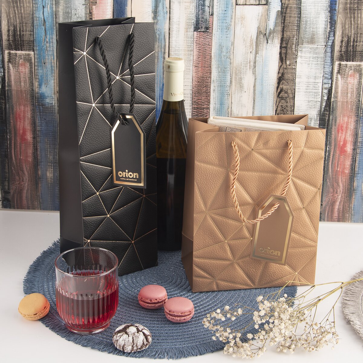 Elegantní, luxusně vypadající dárková taška je tím pravým místem k uložení láhve vína, domácího sirupu nebo dárků, které mají užší, podlouhlý tvar.