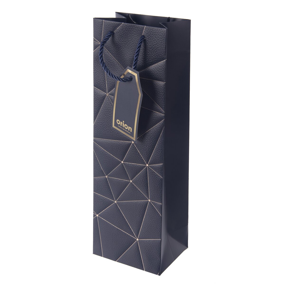 Kód produktu 834661Papírová dárková taška na víno o rozměrech 12x9x36 cm v luxusním modrém provedení.