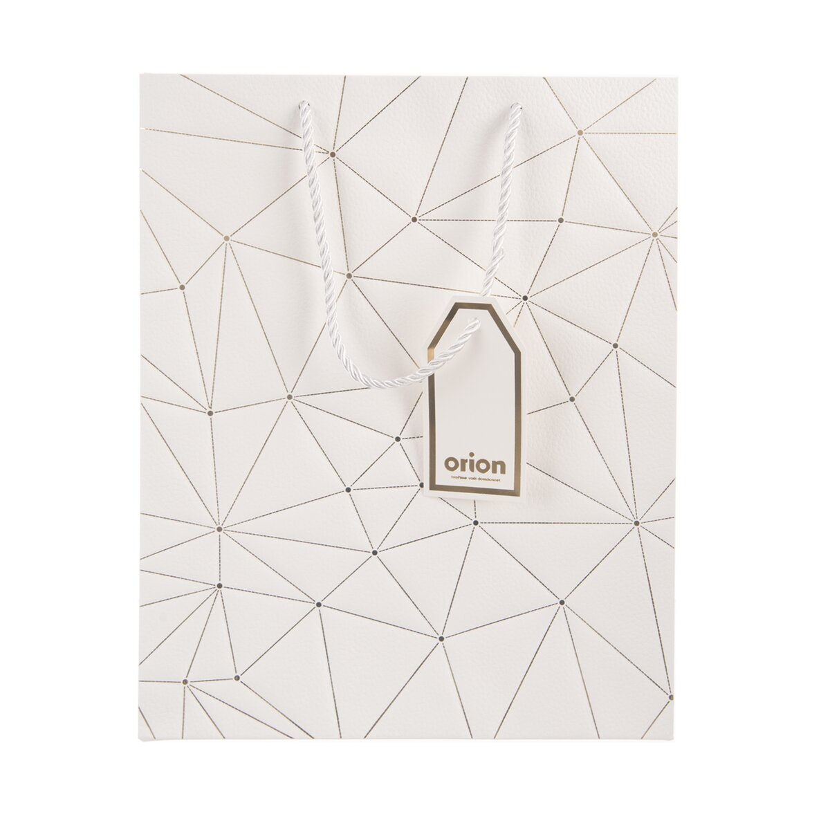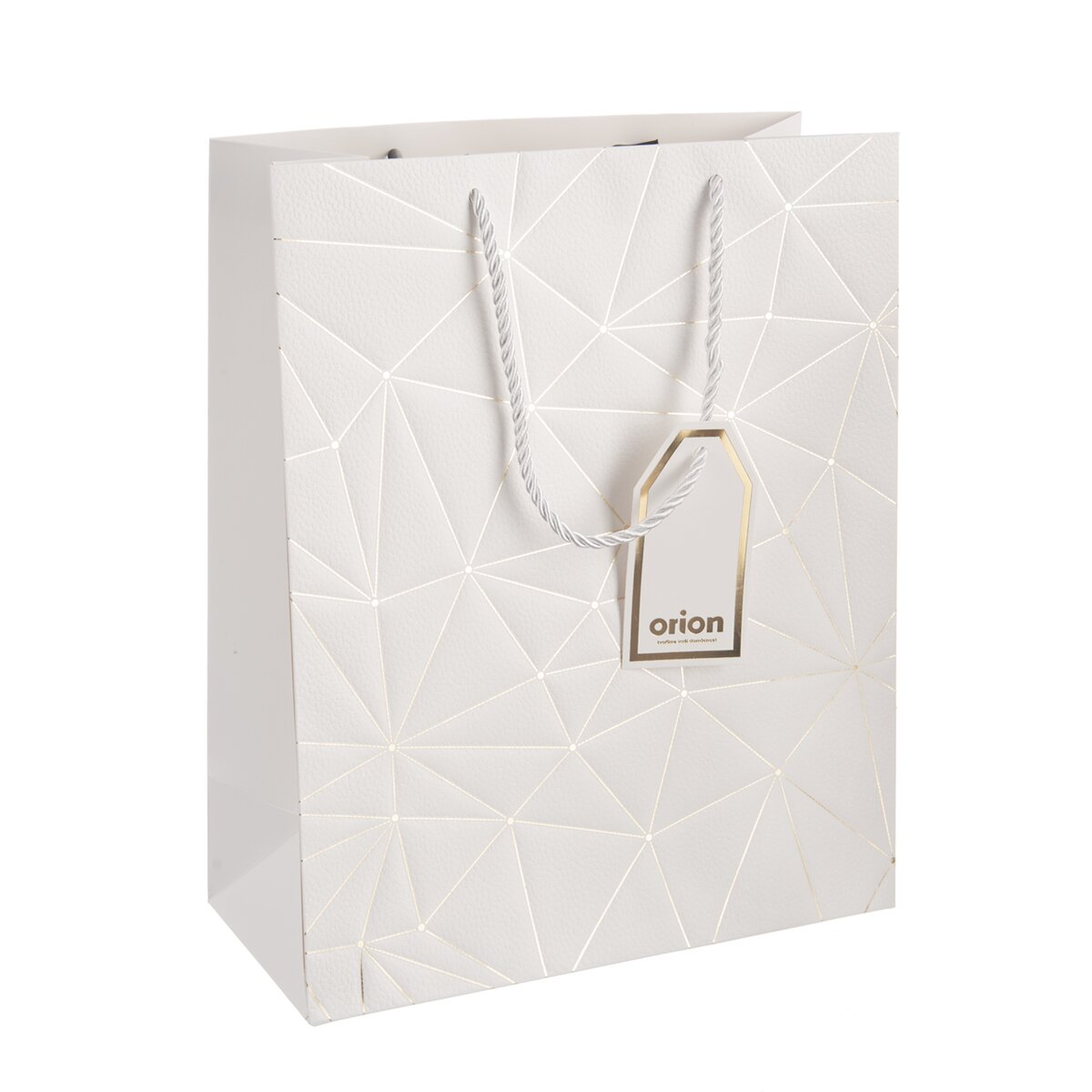 Na přední straně je zdobena zlatými linkami a doplněná jmenovkou, kam lze napsat věnování nebo jméno obdarovaného. S jejím přenášením pomohou držadla z krouceného polyesterového provázku.