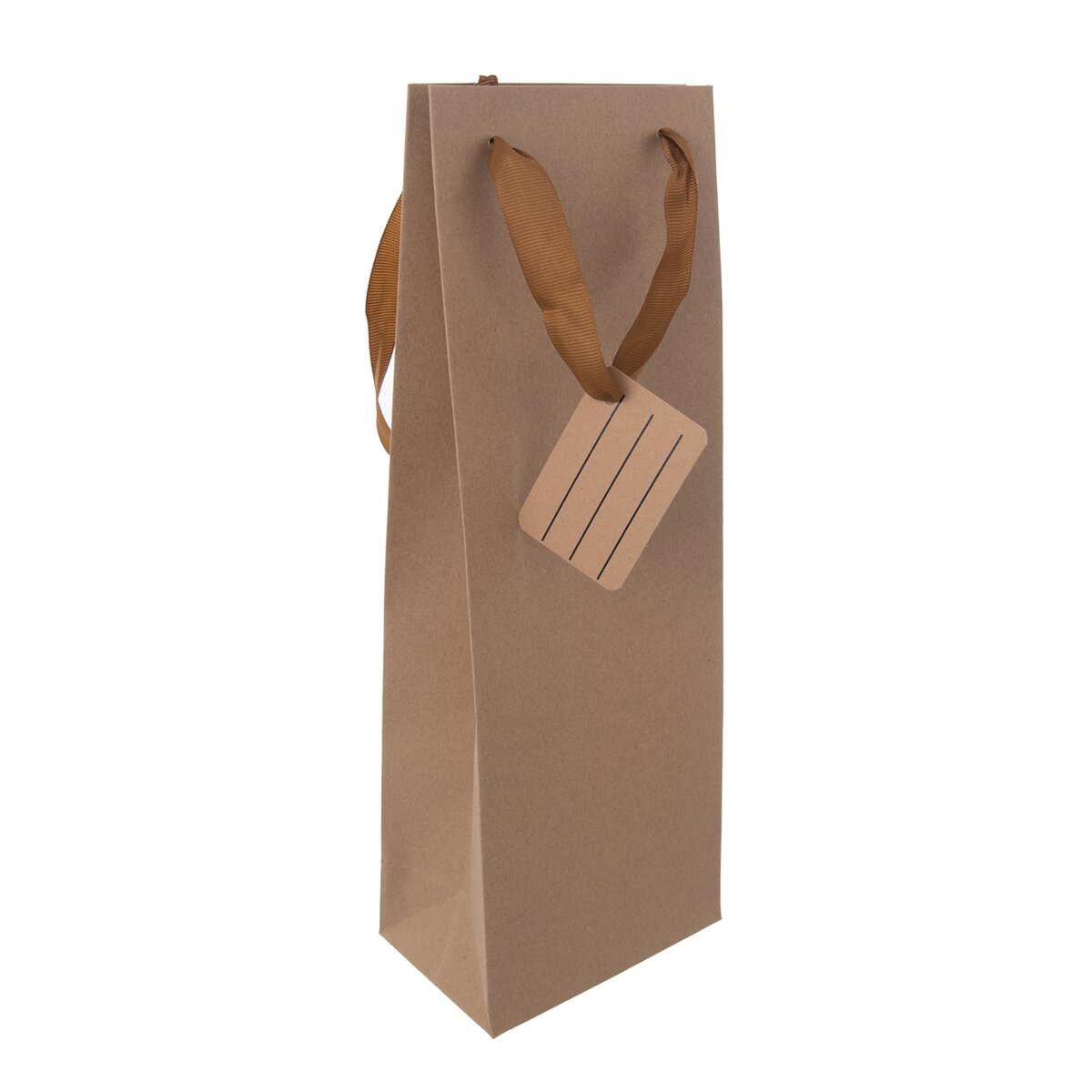 Jestliže dáváte jako dárek víno nebo jinou lahvinku, vložte ji do této jednoduché papírové tašky. Její přírodní design umocňuje papírová cedulka s volným místem pro vypsání jména a mašle namísto ucha.