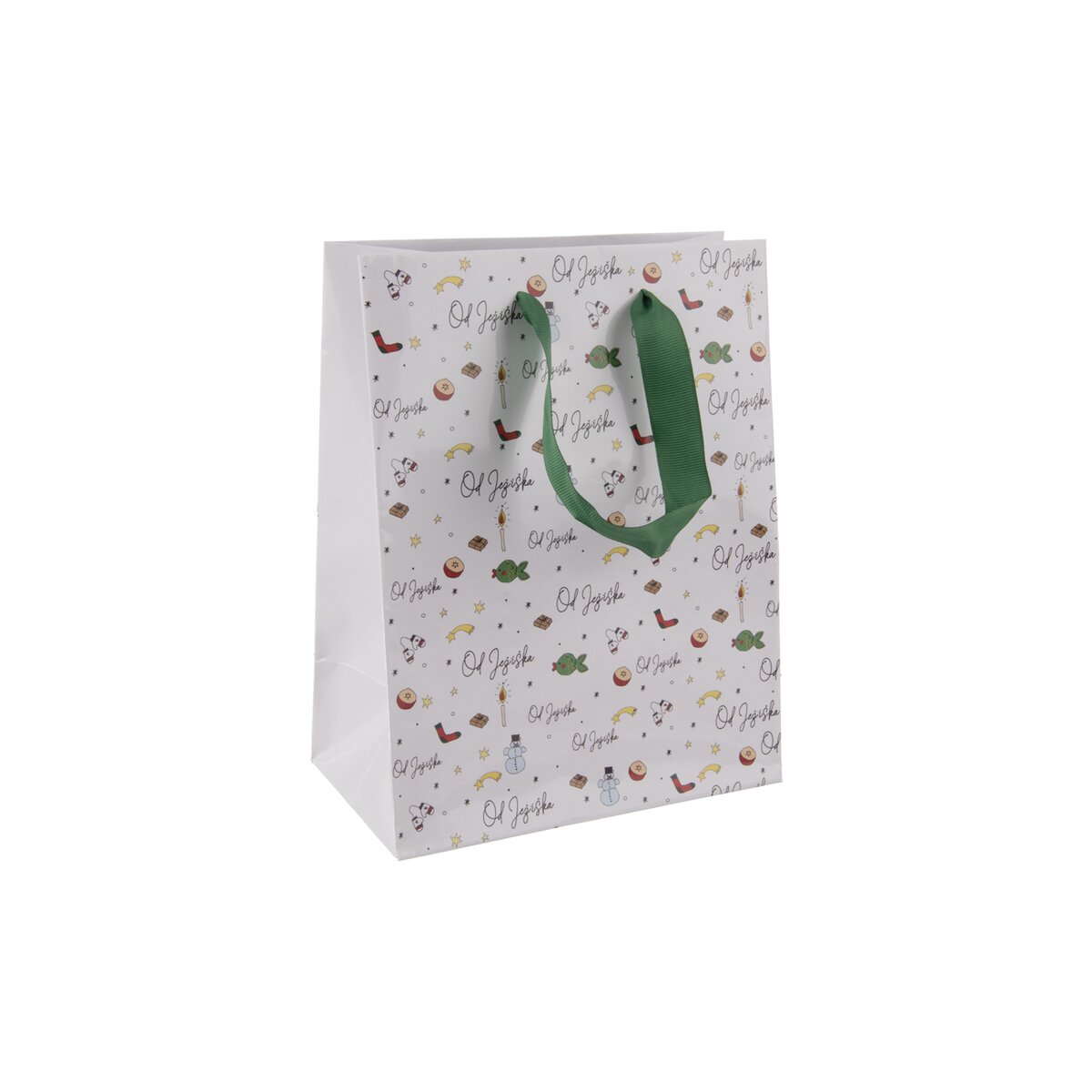 Kód produktu 822793Papírová dárková taška OD JEŽÍŠKA o rozměrech 18x10x23 cm s originálním potiskem je vhodná k uložení nejrůznějších dárků.