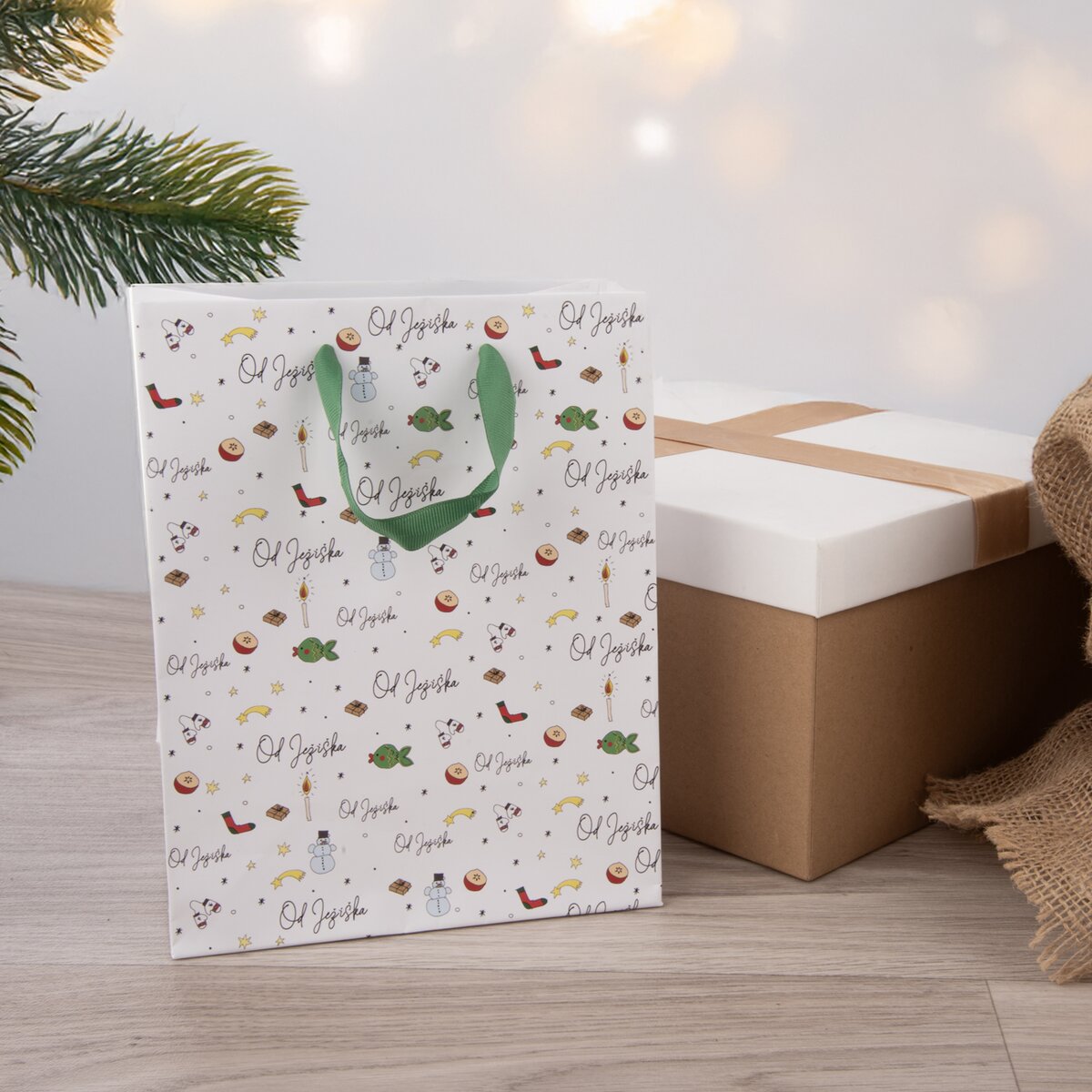 Menší dárková taška OD JEŽÍŠKA je skvělým místem k uložení nejrůznějších dárků, nejen tzv. "měkoušů". Pro partnera, kamarádku, kolegu, ale i při narozeninách nebo výročí.