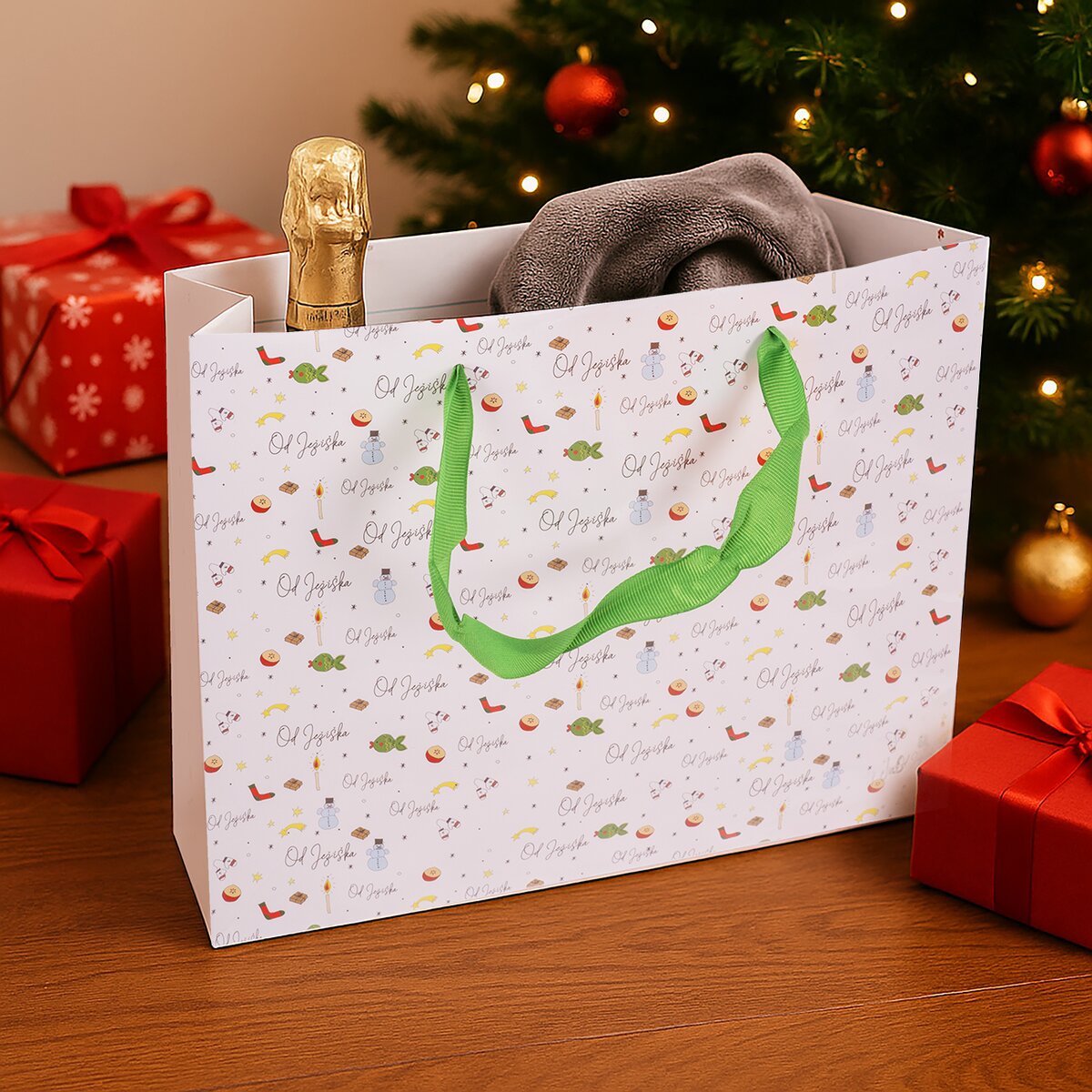 Dekor nápisy OD JEŽÍŠKA vznikl v dílně našich kreativců a obdarovanému napoví, že vložený dárek bude opravdu překvapením, které jednou za rok přináší Ježíšek. Možná ho letos konečně zahlédnete.
