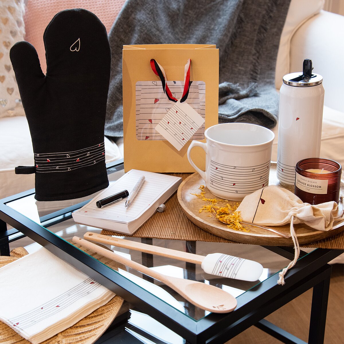 Vnitřní potisk se srdíčky doplňuje jednak jmenovka, kam můžete napsat, pro koho je dárek určený, a barevně ji dolaďuje trojice mašlí, které slouží k přenášení.