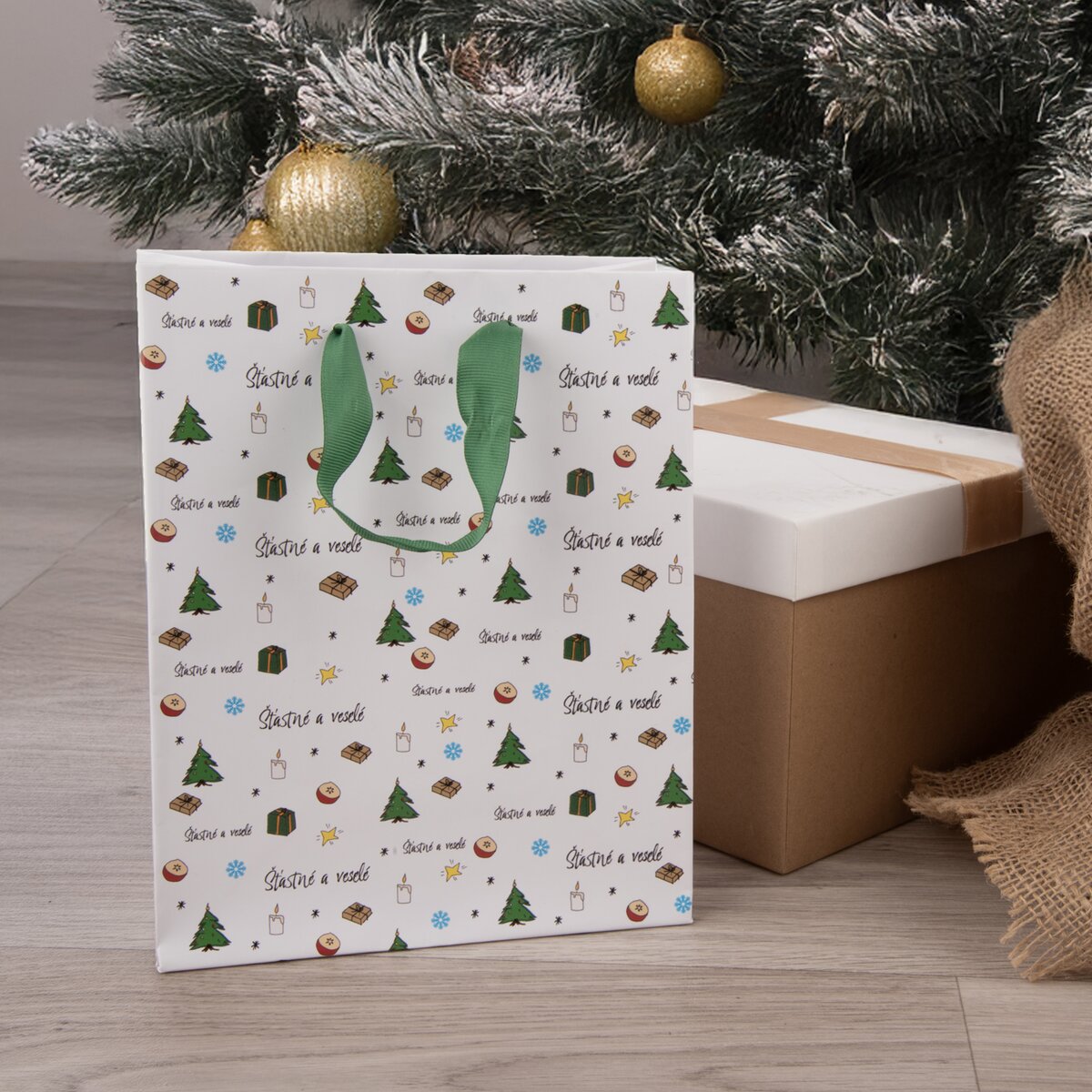 Dárková taška Šťastné a veselé 18x10x23 cm