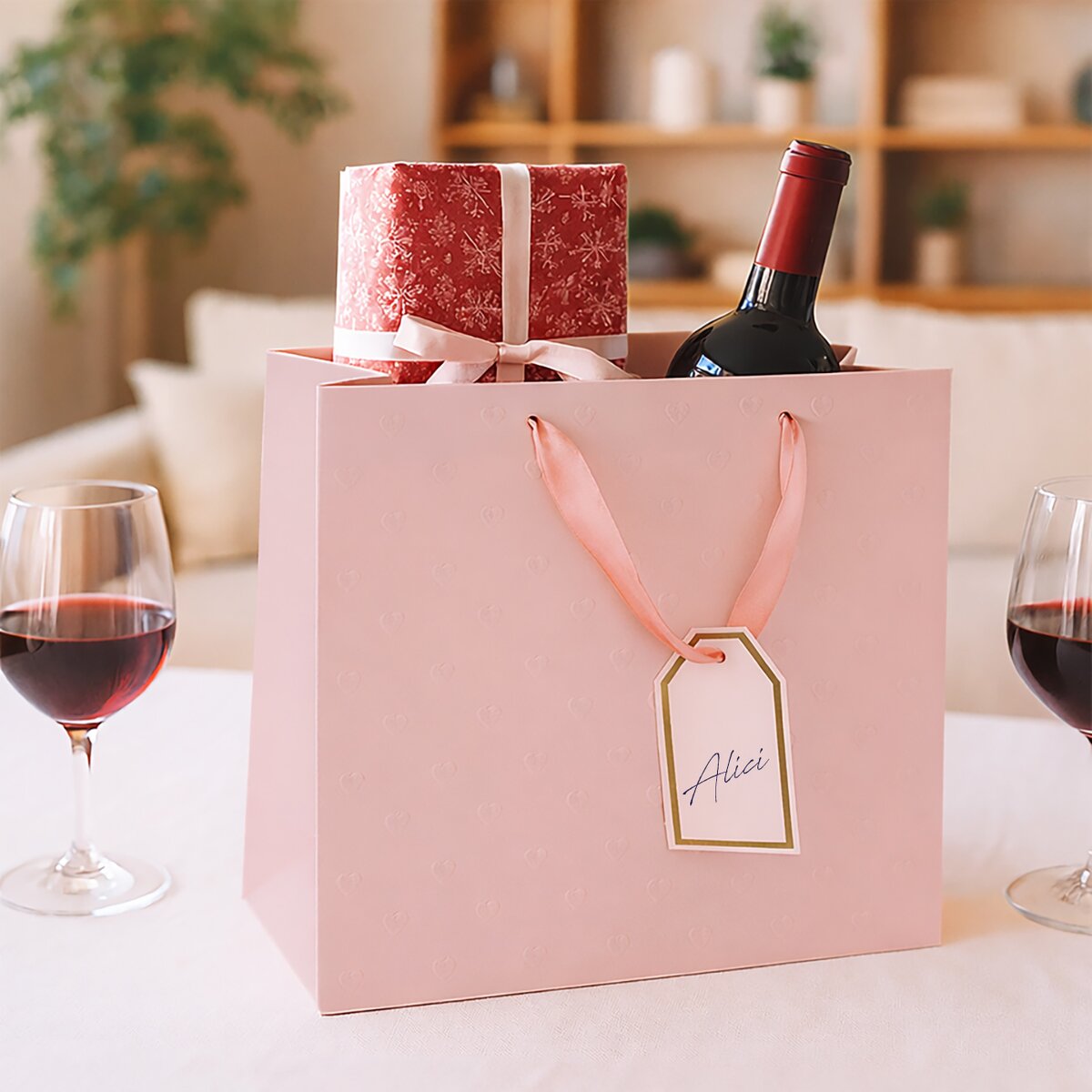 Je doplněná jmenovkou, kam lze napsat věnování nebo jméno obdarovaného. S jejím přenášením pomohou držadla z růžové polyesterové stužky.