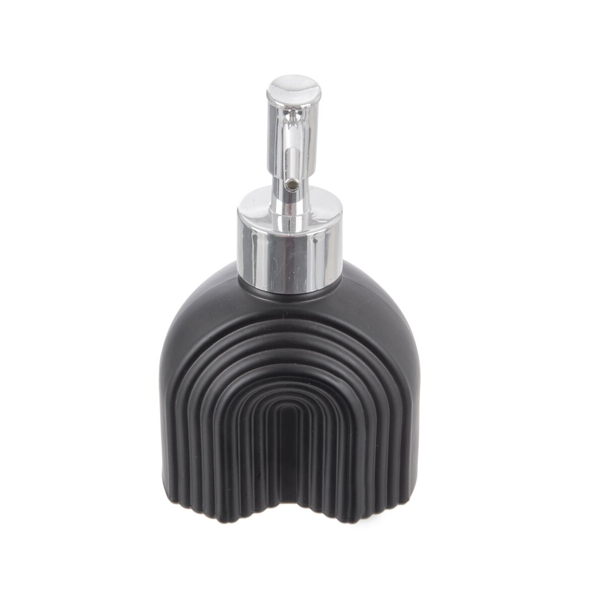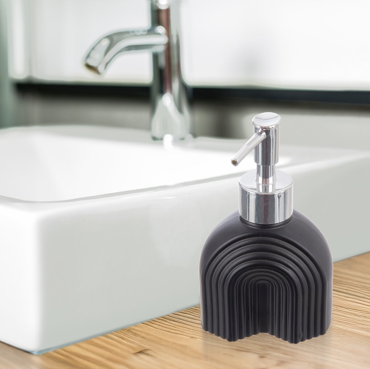 Designový černý dávkovač mýdla je vhodný každé kuchyně či koupelny. Tento skleněný dávkovač tekutého mýdla či saponátu osloví svým netradičním provedením. Navíc díky strukturovaném reliéfu se bude dobře držet a např. při plnění nevyklouzne tak snadno z ruky.