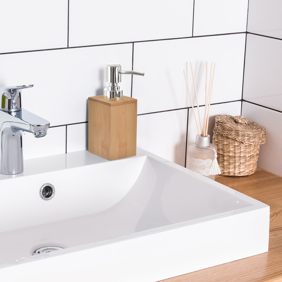 Kód produktu 530772Bambusový dávkovač o objemu 0,185 l pro pohodlné dávkování tekutého mýdla, ale i saponátu.