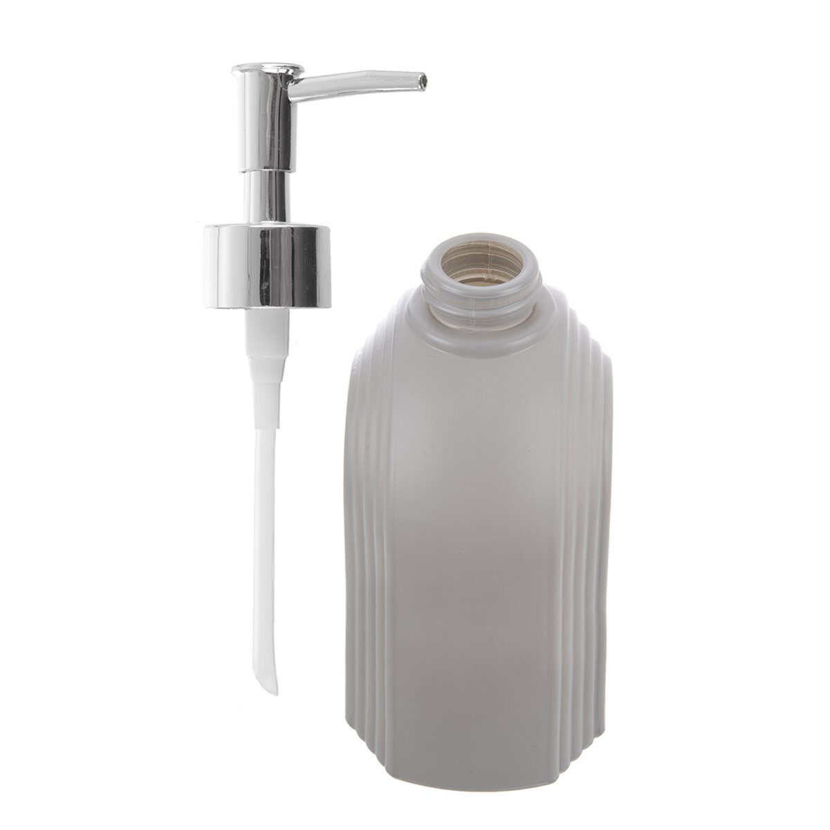 Kód produktu 530795Skleněný dávkovač mýdla nebo saponátu o objemu 0,32 l je zdoben zajímavým reliéfem a má šedý nástřik.
