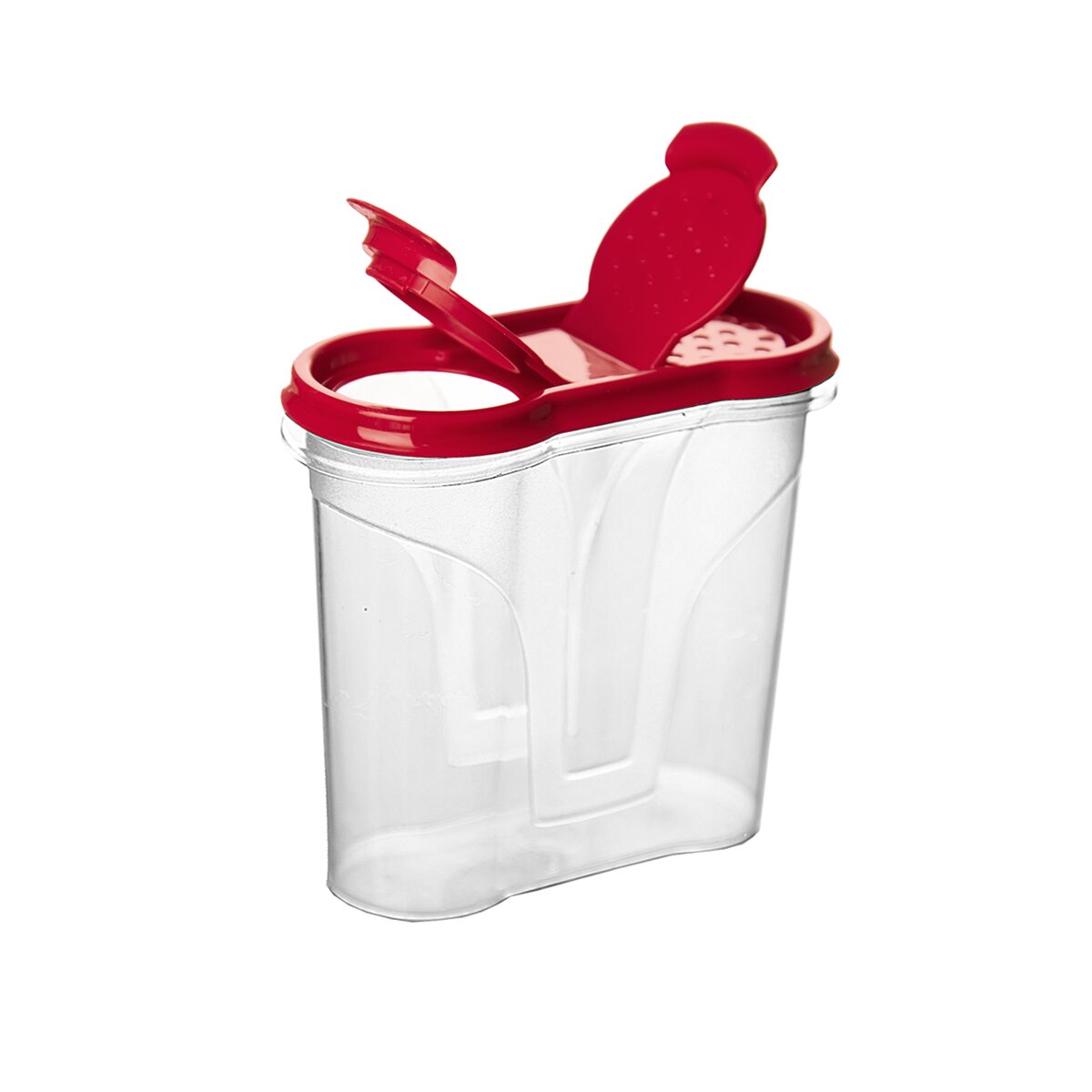 Má dva dávkovací otvory, které usnadňují odměření a sypání potravin.