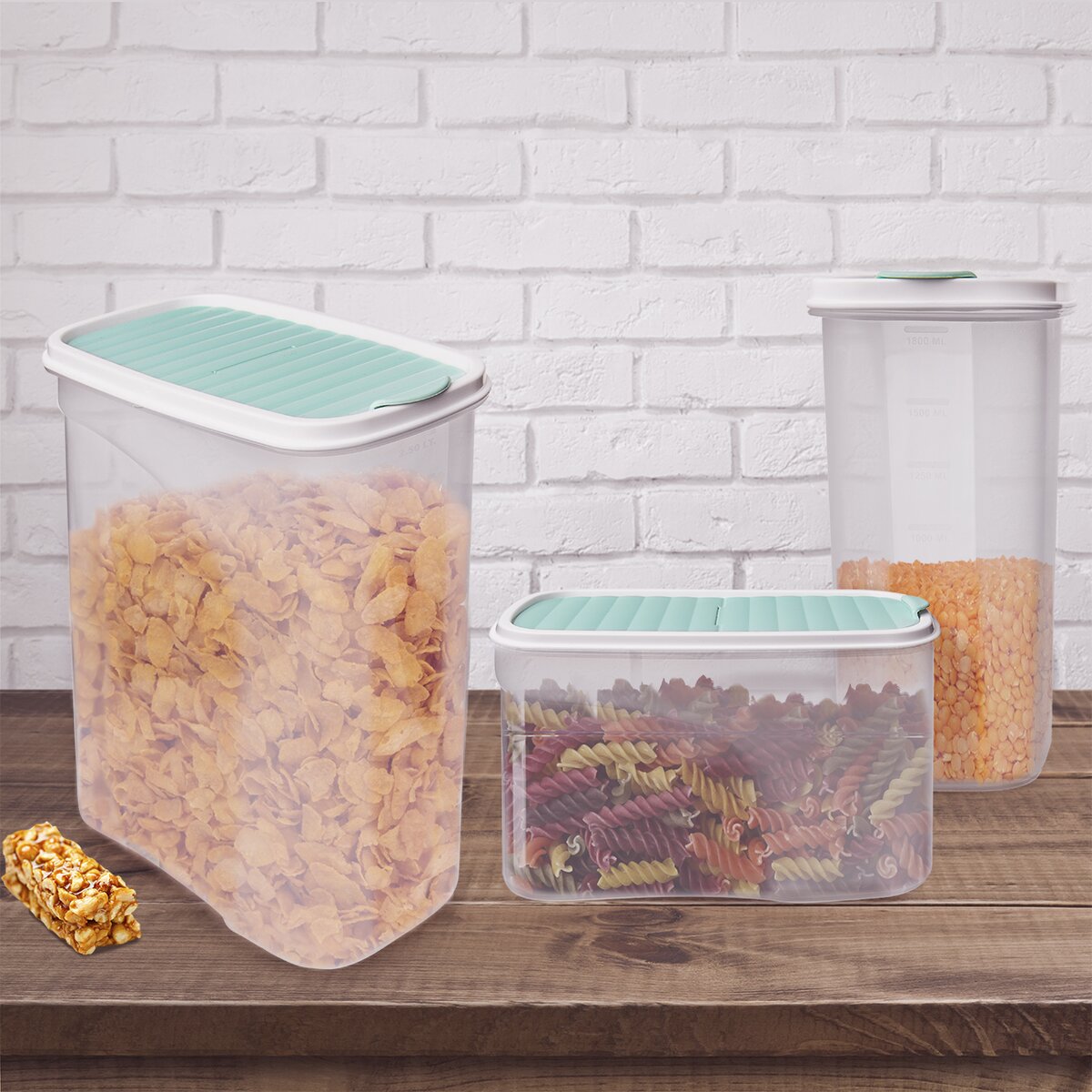 Kód produktu 127141Poloprůhledná dóza BONNY o objemu 1,8 l s praktickým odklápěcím víčkem a vyznačenou měrnou stupnicí.