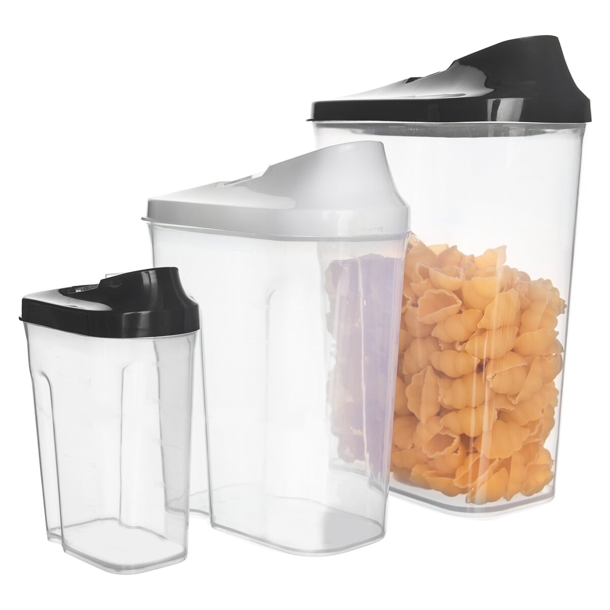Dóza s dávkovačem. Materiál: plast. Barva víček dle aktuální nabídky. Rozměry: celkový objem 0,27 l, 5x8x12,5 cm. Vhodná do MVT do 95 °C (bez víčka). Lze mýt v myčce na nádobí. Vhodná do mrazničky -25 °C. Odměrka 50 - 250 ml (po 50 ml).