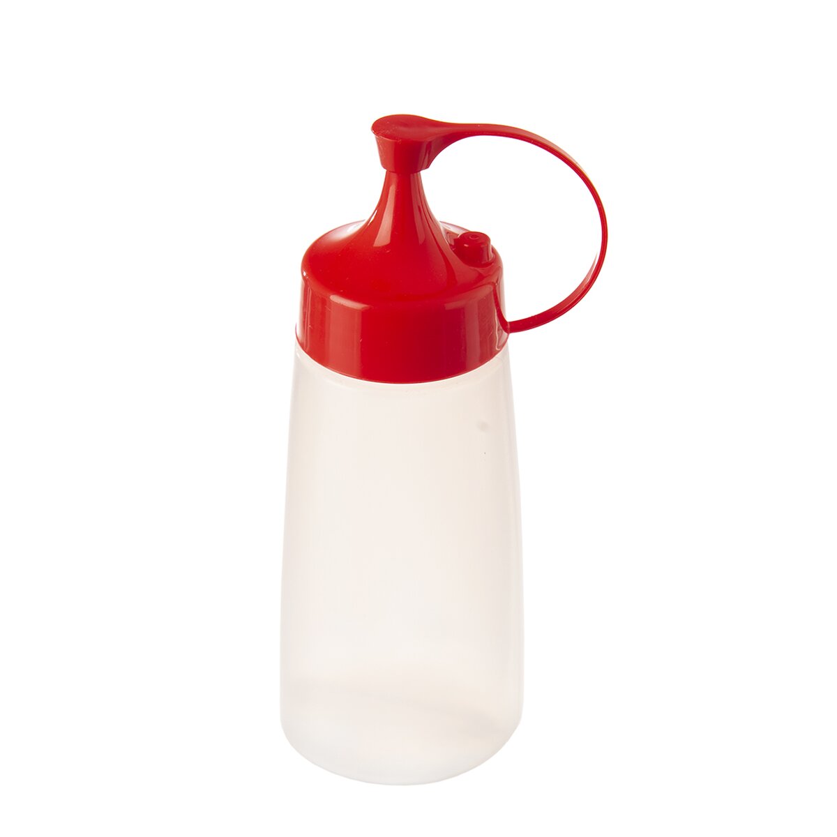 Kód produktu 152911Dávkovací plastová láhev o objemu 340 ml, doplněná šroubovacím víčkem a odnímatelným uzávěrem v červené barvě. Hodí se k podávání dochucovadel, kečupu, hořčice, majonéz, octa či oleje nejen při grilování, ale i na polevy a topingy.