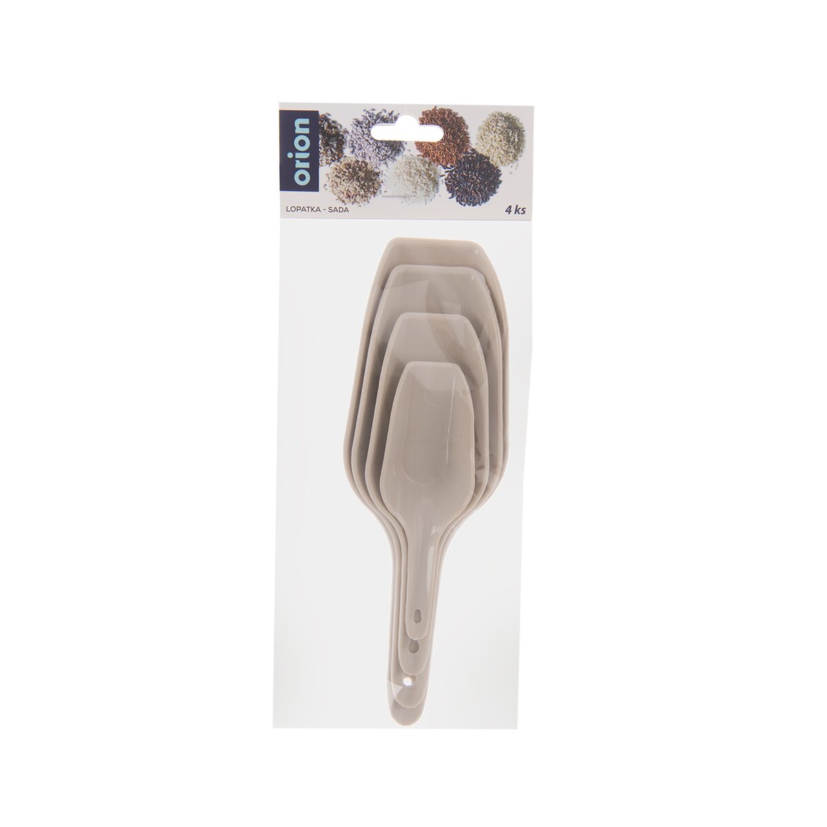 Kód produktu 143019Sada 4 kusů béžových plastových lopatek je určena k nabírání sypkých směsí nejen v kuchyni, ale i v cukrárnách, bezobalových obchodech a kutilských dílnách.
