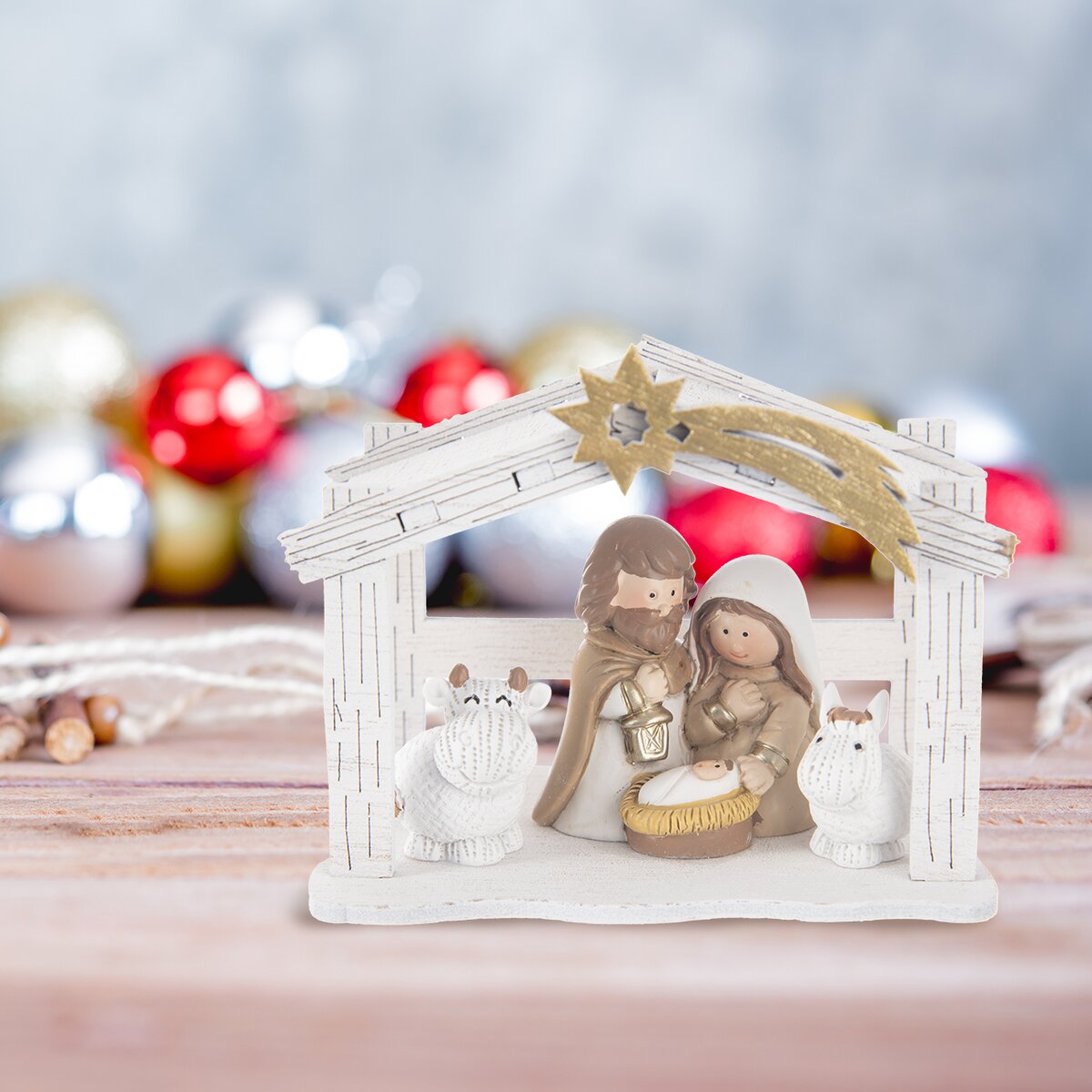 Kód produktu 351850Bílý Betlém s kometou a ústředními postavami narození Ježíška je milou dekorací v období Adventu.