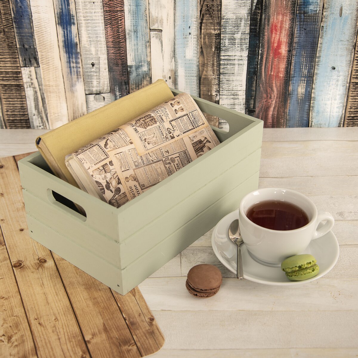 Kód produktu 731056Dřevěná bedýnka v tlumené, světle zelené barvě, o velikosti 26x16x11 cm, pomůže uspořádat věci denní potřeby, poslouží i jako zajímavá dekorace v interiéru.