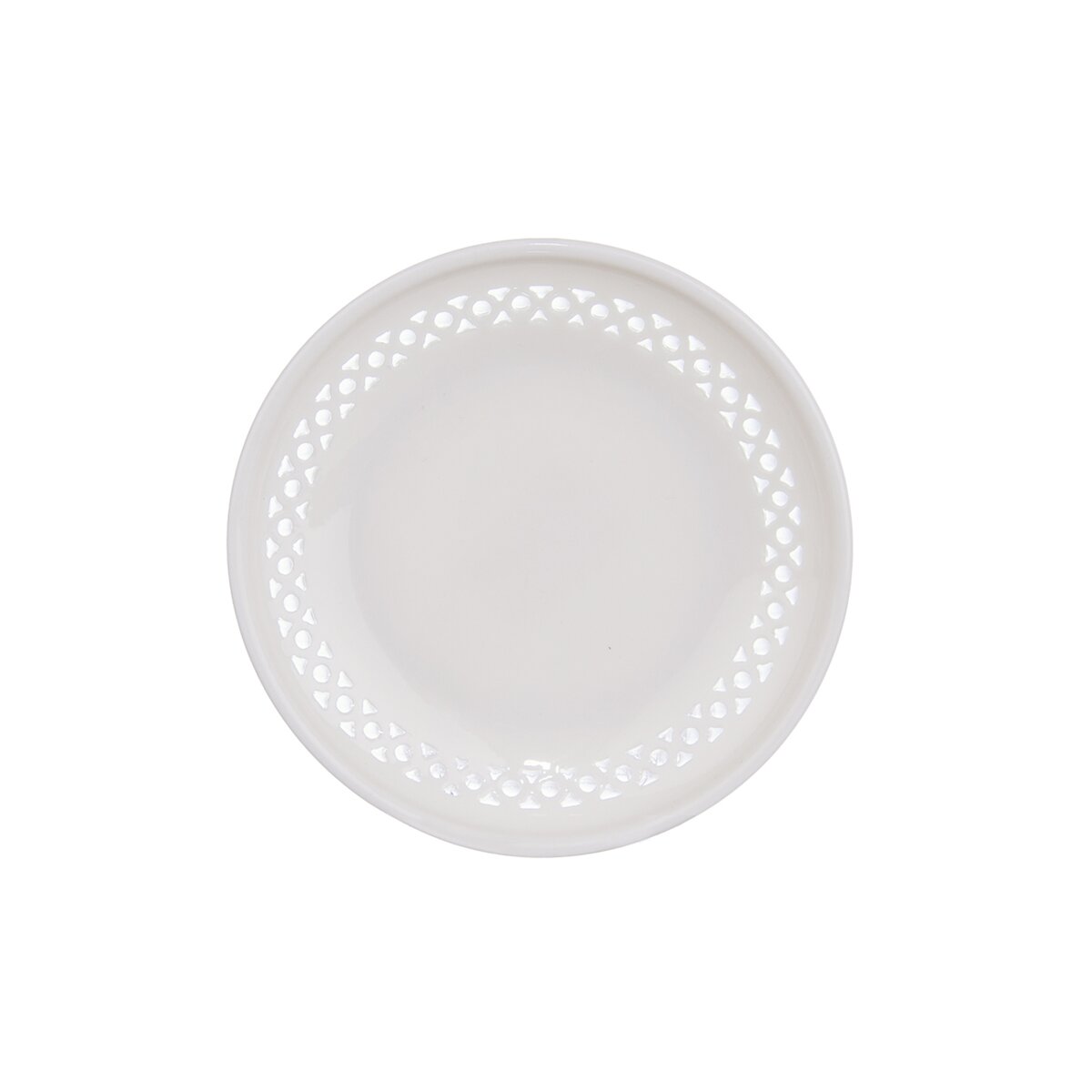 Kód produktu 128369Porcelánový dezertní talíř LIGHT o průměru 14 cm s prosekávaným dekorem po obvodu.