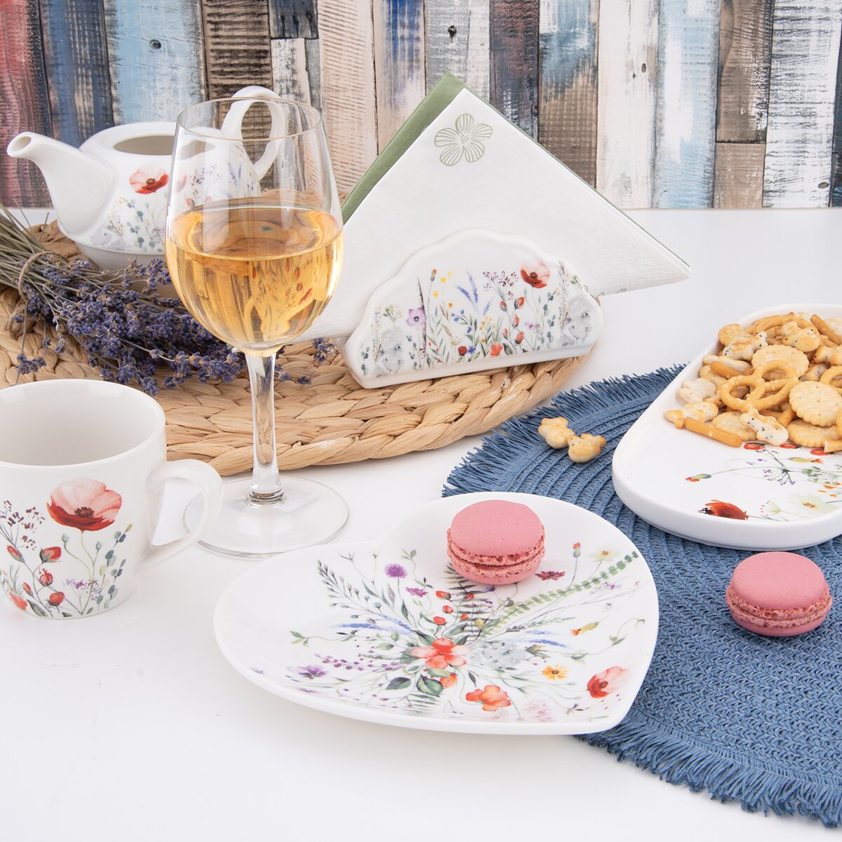 Kód produktu 129131Dezertní porcelánový talíř MÁK má tvar srdíčka a je zdoben něžným dekorem lučních květin.