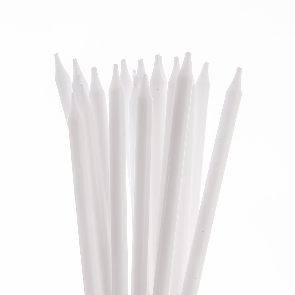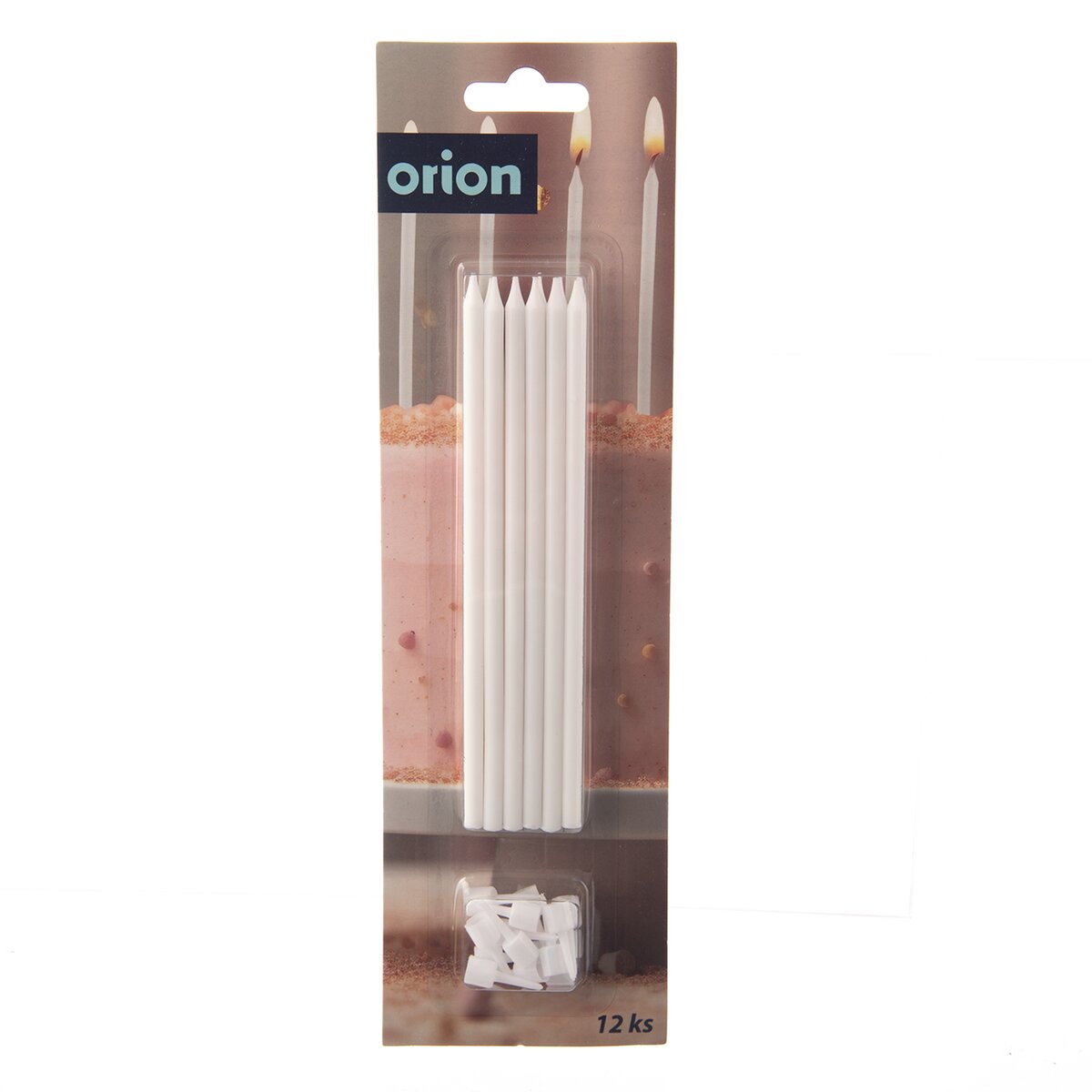 Kód produktu 822261Bílé dortové svíčky délky 14,5 cm, s nástavci opatřenými hroty, jsou nedílnou součástí každé oslavy narozenin či výročí. V balení je 12 tenkých svíček a hrotů