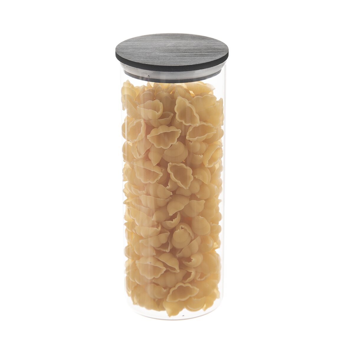 Dózu z borosilikátového skla, uzavíratelnou černým bambusovým víčkem se silikonovým těsněním, využijete k uskladnění potravin.