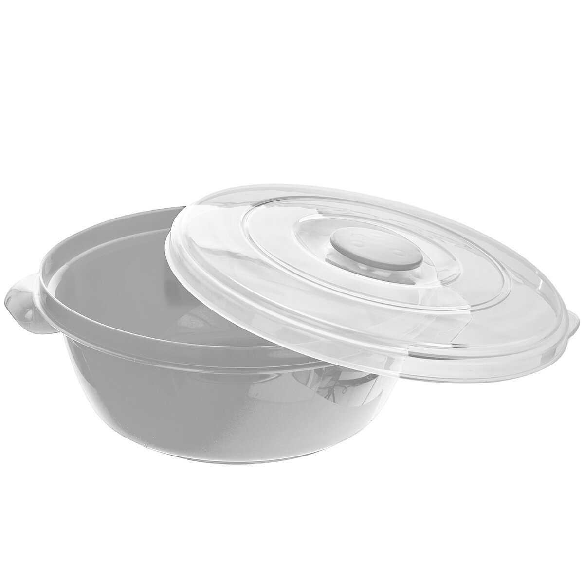 Plastová dóza kulatého tvaru určená k ohřevu v mikrovlnné troubě, ale která se také hodí na uskladnění a přenášení polévek, omáček, salátů a jiných pokrmů. Má objem 1,8 l a praktické transparentní víko, díky čemuž snadněji rozpoznáte obsah nádoby. Výhodou jsou také dvě ucha, která ulehčují její přenášení.
