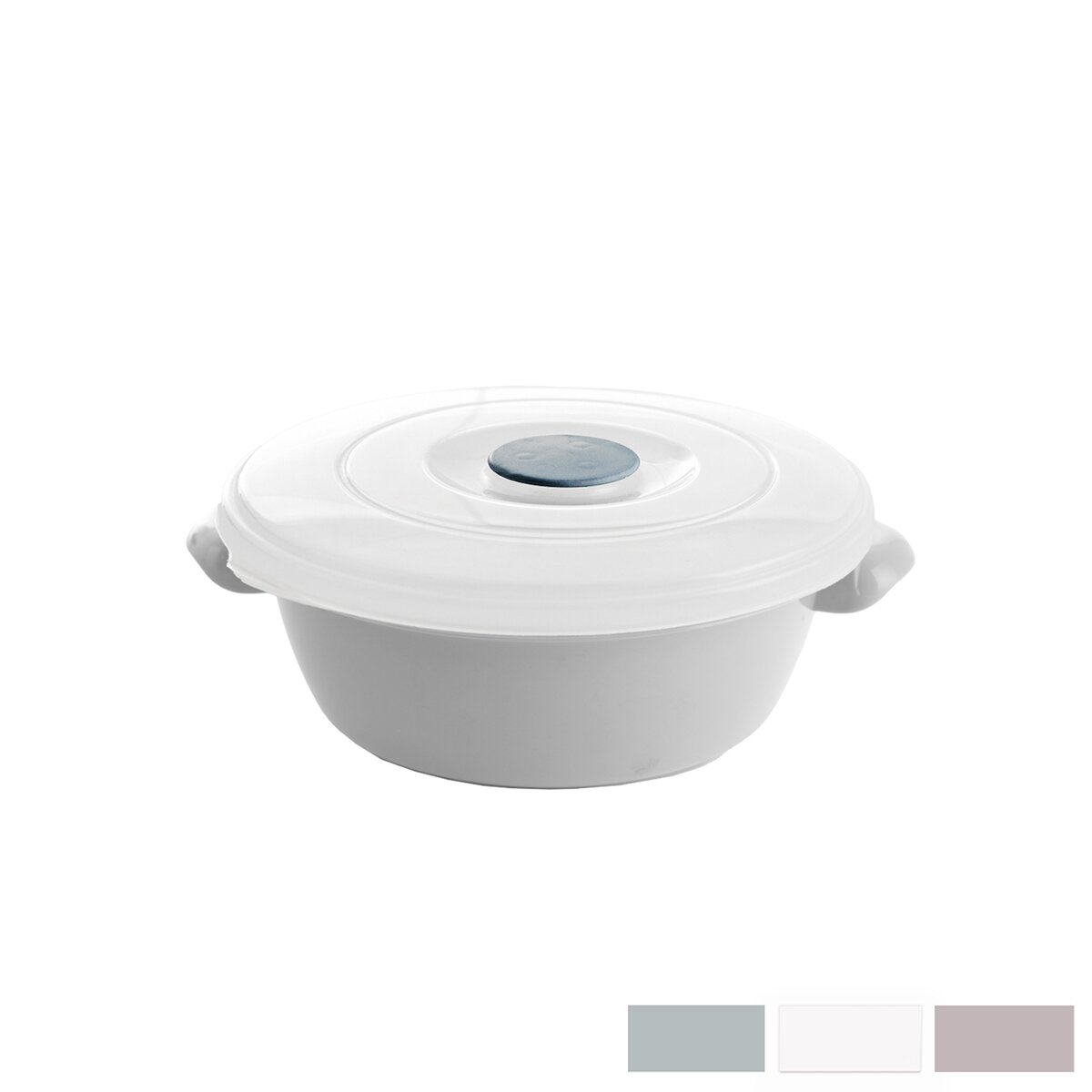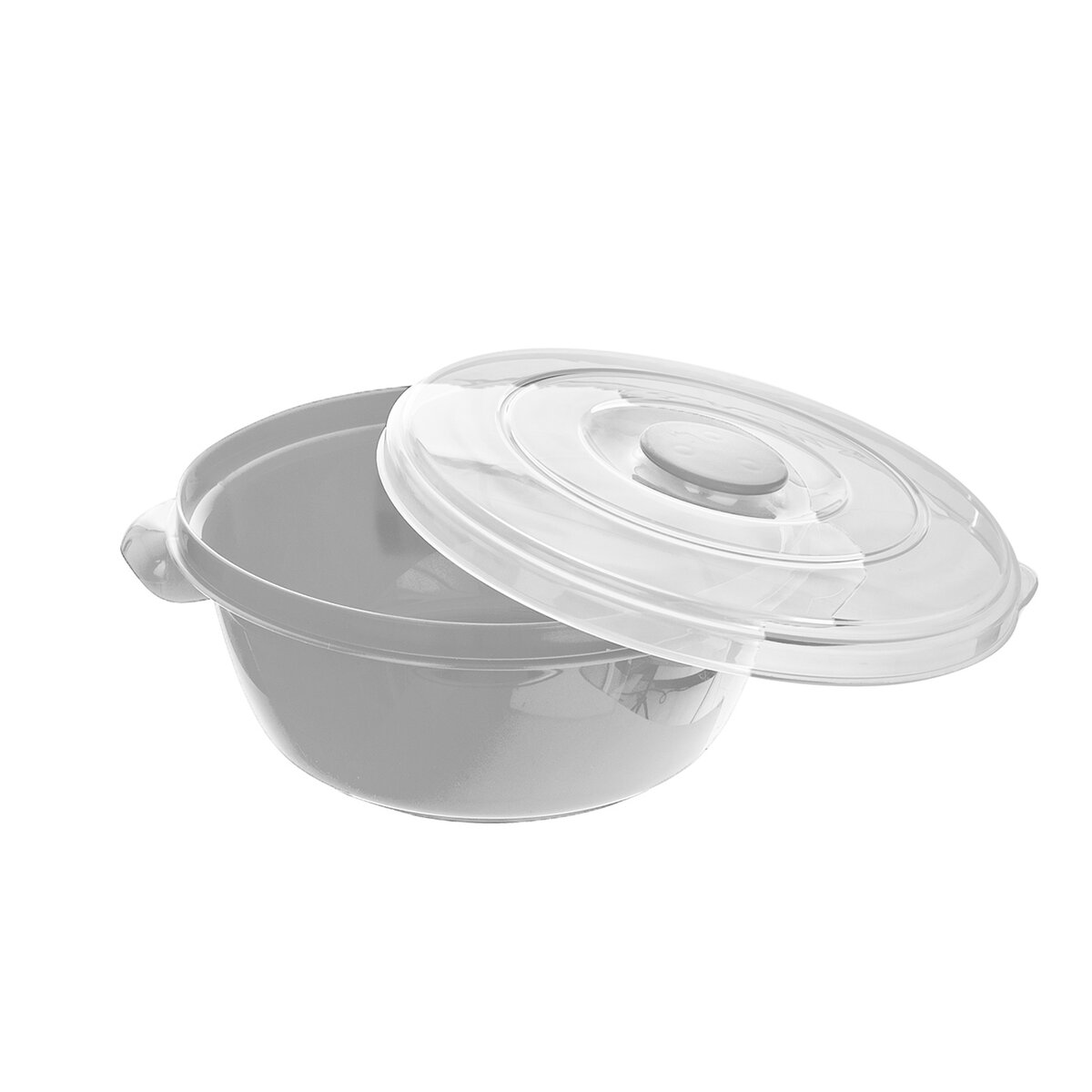 Kód produktu 123836Plastová kulatá dóza o objemu 1 l s transparentním víčkem a dvěma uchy, vhodná k ohřevu v mikrovlnné troubě i skladování pokrmů v chladničce.