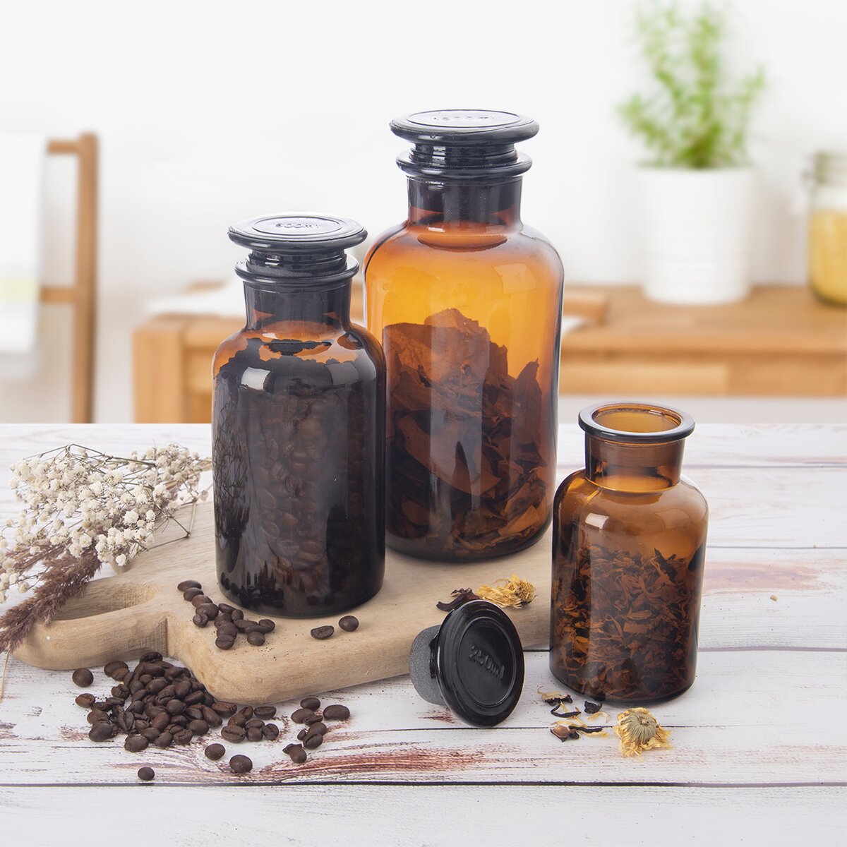 Kód produktu 127592Hnědá skleněná dóza o objemu 1 l je opatřena zábrusem a skleněnou zátkou.