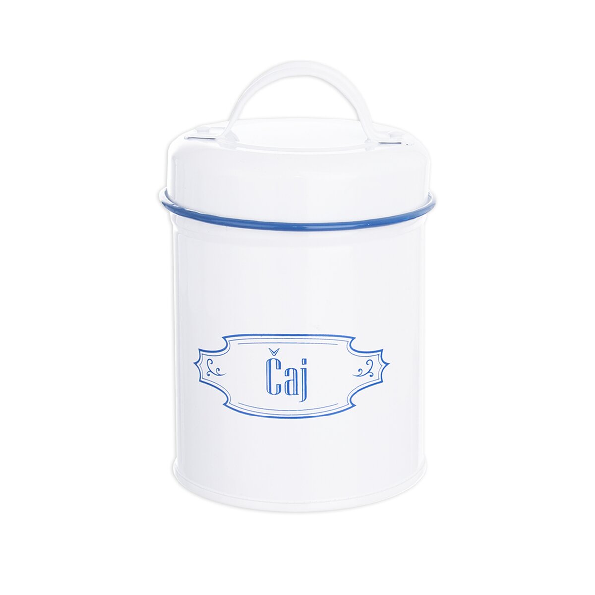 Kód produktu 153644Dóza s víčkem na uložení čaje. Materiál: plech. Rozměry: pr. 9 cm, v. 15,5 cm.