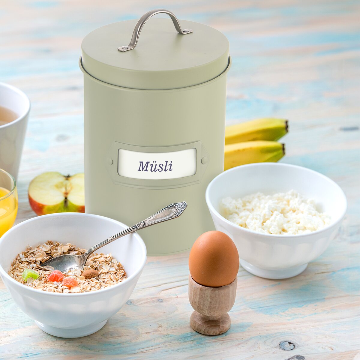 Kód produktu 127902Tlumená zelená dóza GREENISH s víčkem a přihrádkou na jmenovku se hodí k uložení suchých potravin. Má objem 2,2 l a je uzavřena víčkem s držadlem.