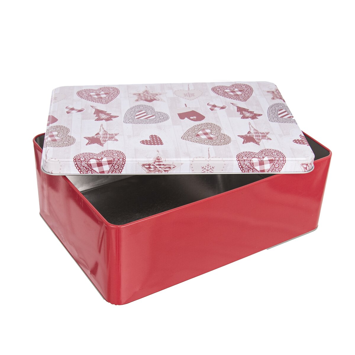 Dóza s víčkem. Skvělá jako dárek naplněný vaším vlastním cukrovím. Materiál: kov. Rozměry: 26x18x9,5 cm.