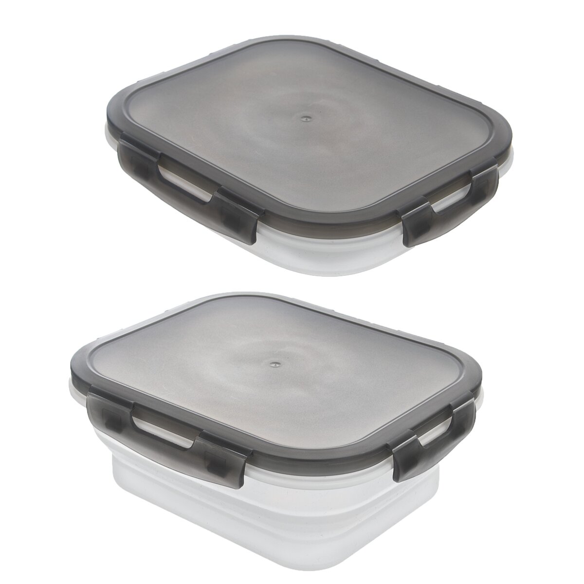 Kód produktu 127158Skládací transparentní hranatá dóza objemu 0,78 l s těsněním a víčkem se 4 klipy, vhodná na kempování, do karavanu i na uložení pokrmů do práce nebo na svačinu do školy. Umožňuje ohřev v mikrovlnné troubě a mytí v myčce.