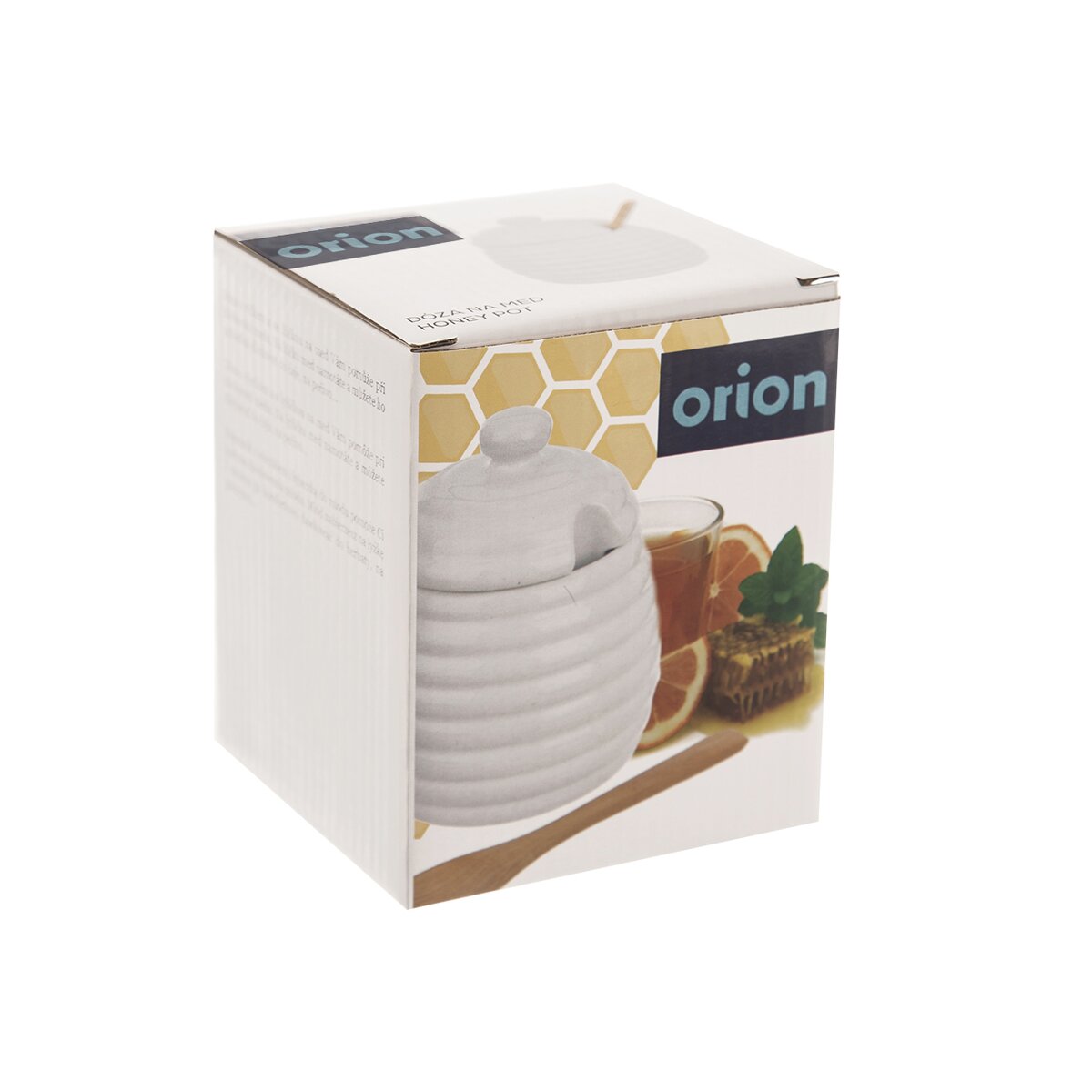 Kód produktu 142287Porcelánová dóza na med s víčkem a dřevěnou lžičkou na nabírání medu. Lze ji umývat v myčce nádobí.