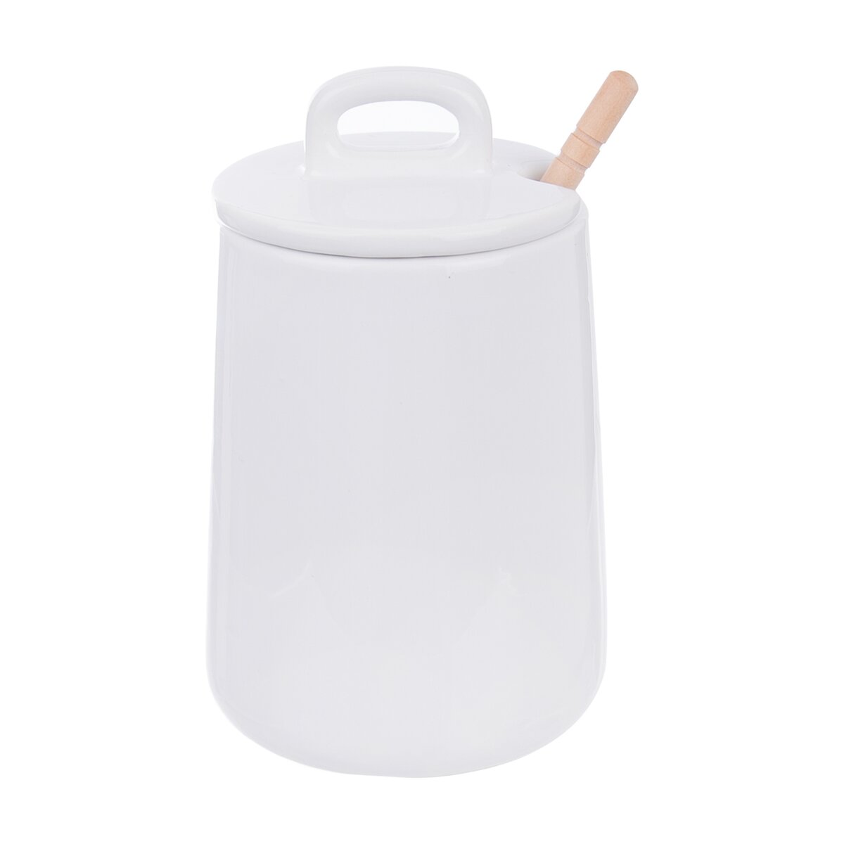 Kód produktu 142288Porcelánová dóza na med s víčkem s držadlem a s dřevěnou lžičkou na nabírání medu uvnitř. Lze ji umývat v myčce nádobí.
