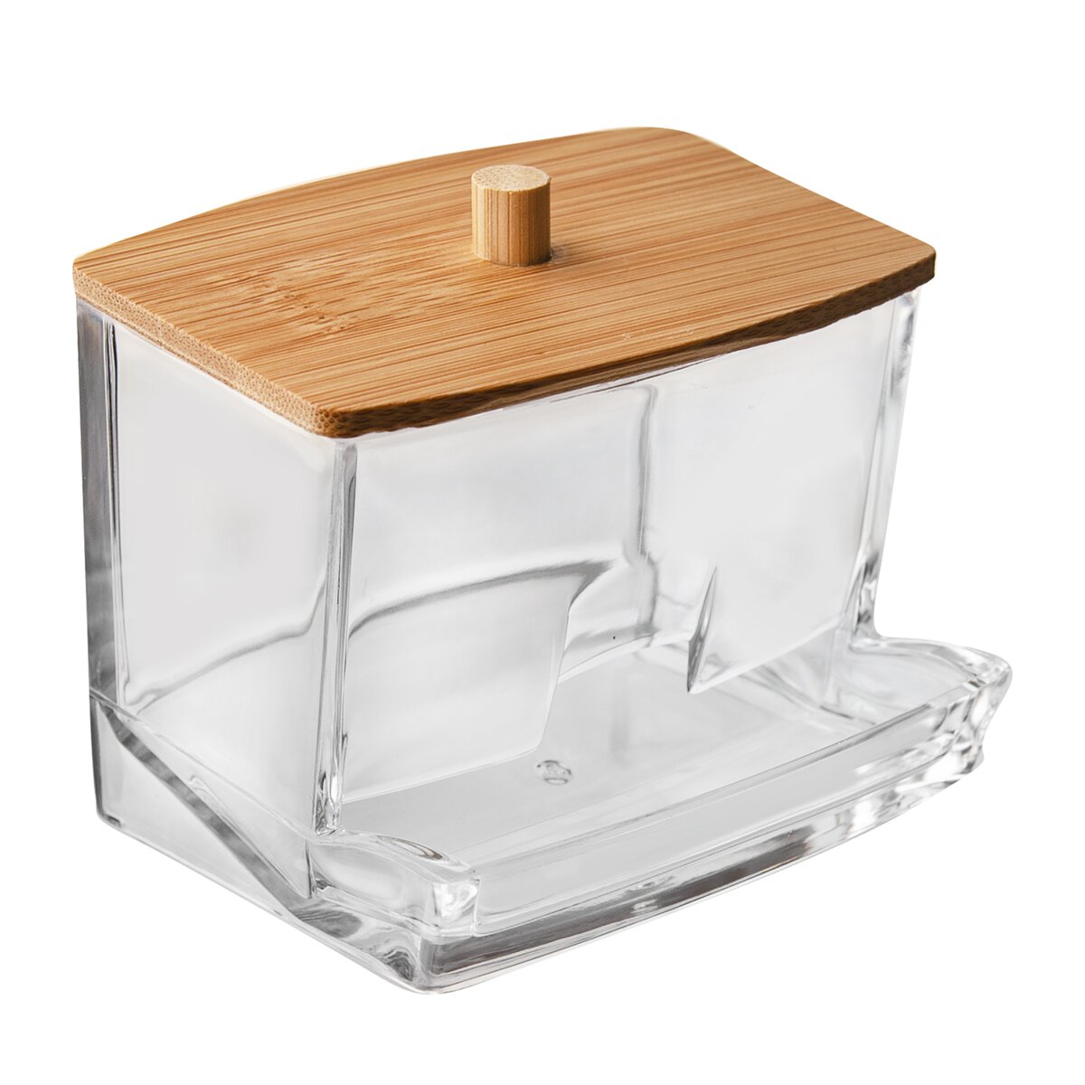 Kód produktu 127134Hranatá transparentní dóza na vatové tyčinky WHITNEY s bambusovým víčkem do každé koupelny nebo na kosmetický stolem.