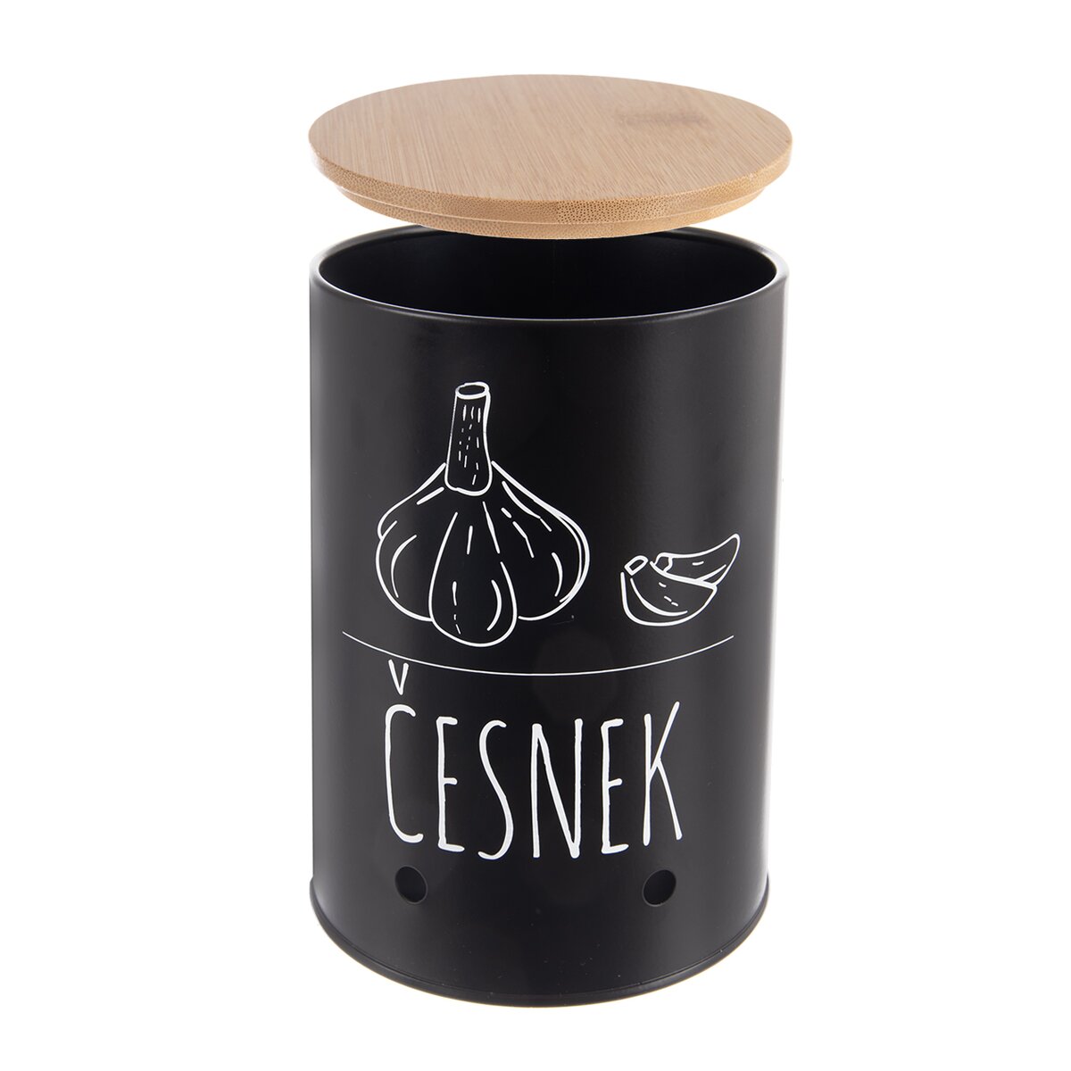 Kód produktu 127596Dóza na česnek BLACK je určena k uložení palic česneku, budou tak správně skladovány, navíc má otvory pro cirkulaci vzduchu a praktické bambusové víčko.