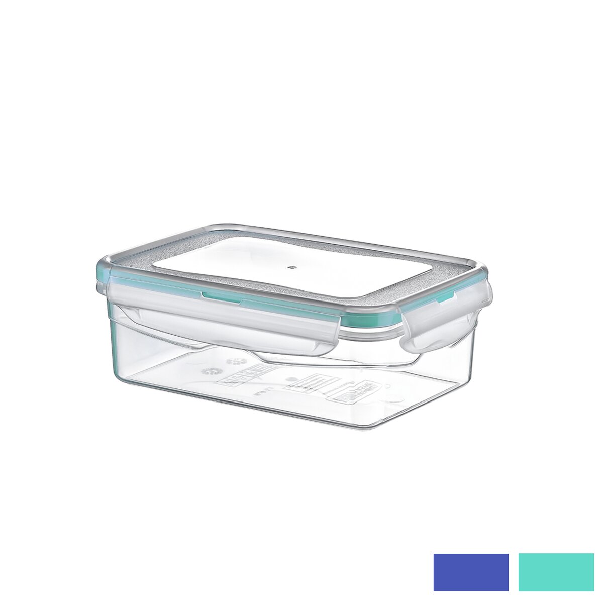 Kód produktu 123600Obdélníková plastová dóza o objemu 0,8 l s uzavíráním na klipy a silikonovým těsněním.