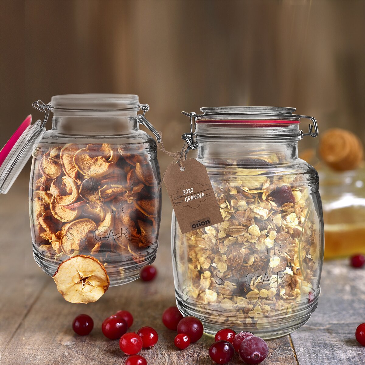 Kód produktu 126468Dóza skleněná patentní s klasickým silikonovým těsněním a drátěným uzávěrem. Tvar soudku. Rozměry: objem 1,8 l, pr. 13 cm, v. 20 cm. Náhradní těsnění v naší nabídce 180516.