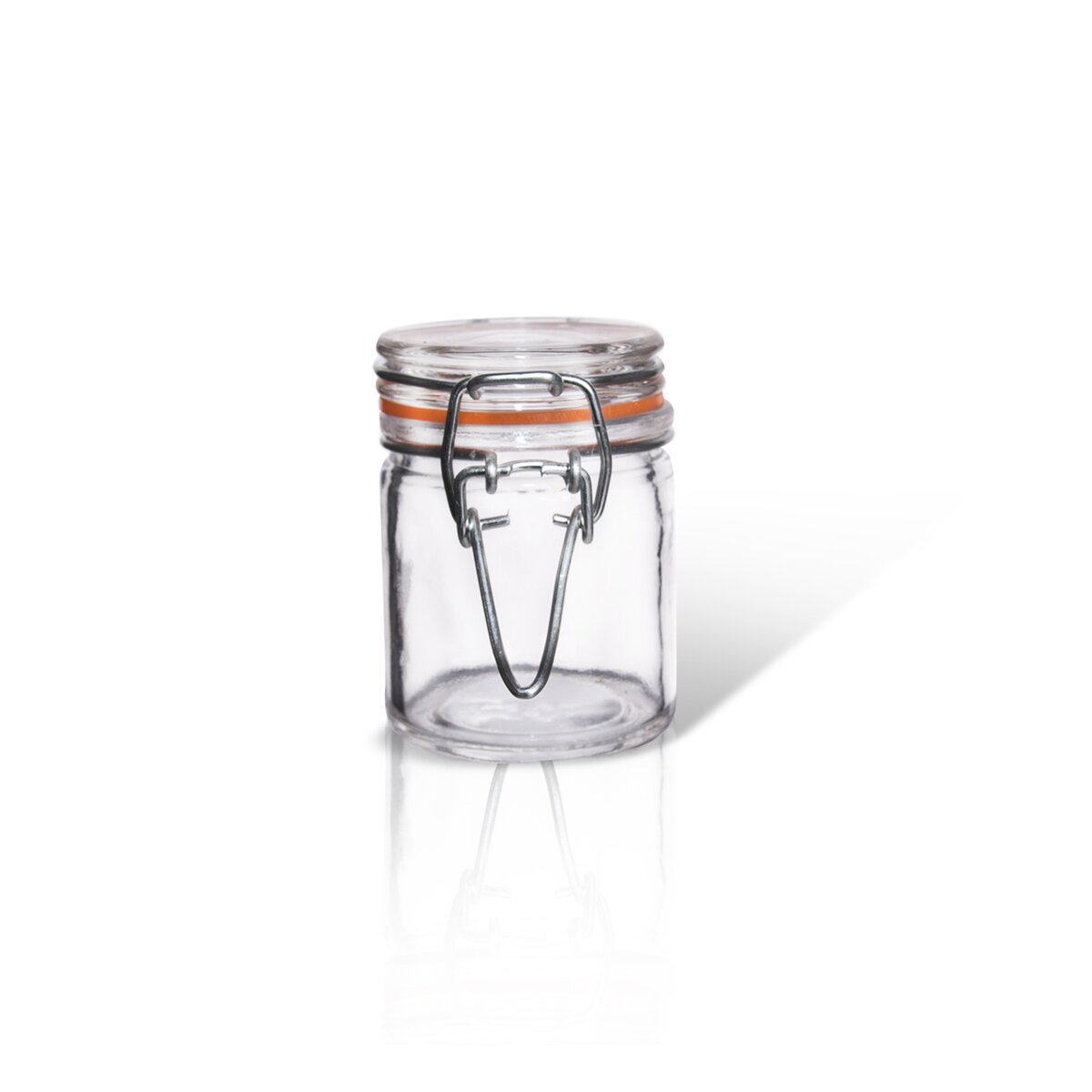 Kód produktu 126570Malá nakládací skleněná dóza BELA o objemu 0,05 l s kovovým patentem a silikonovým těsněním.