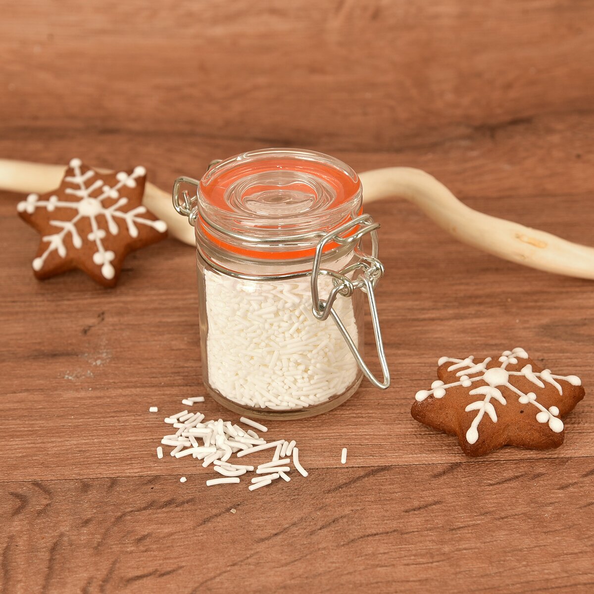 Má objem 50 ml. Pevné utěsnění jejího obsahu zajišťuje silikonové těsnění a patentní drátěný uzávěr. Pokud ji navíc naplníte sušenými bylinkami nebo kamínky, stane se krásnou dekorací na váš stůl. Lze mýt i v myčce, do myčky je ale vhodné pouze sklo, které častým používáním myčky může lehce šednout, jedná se o běžný jev.