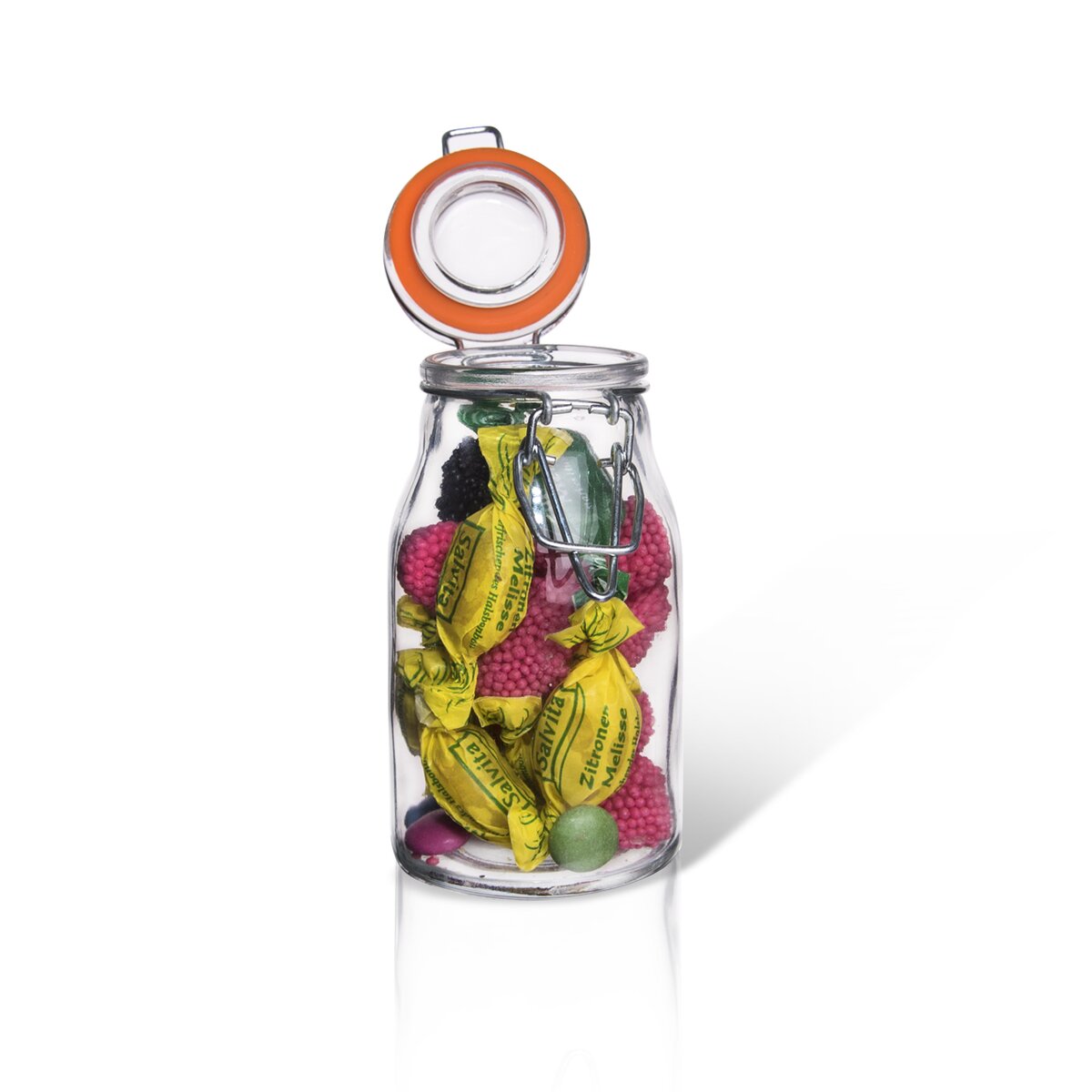 Kód produktu 124673Skleněná dóza BELA o objemu 0,2 l s kovovým patentem a silikonovým těsněním.