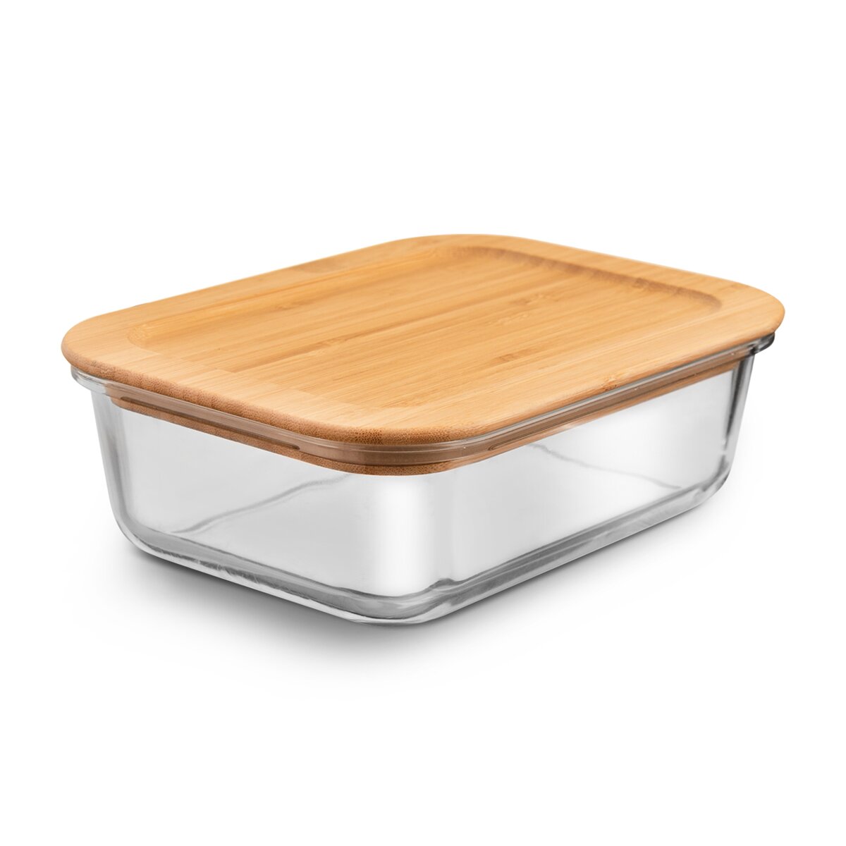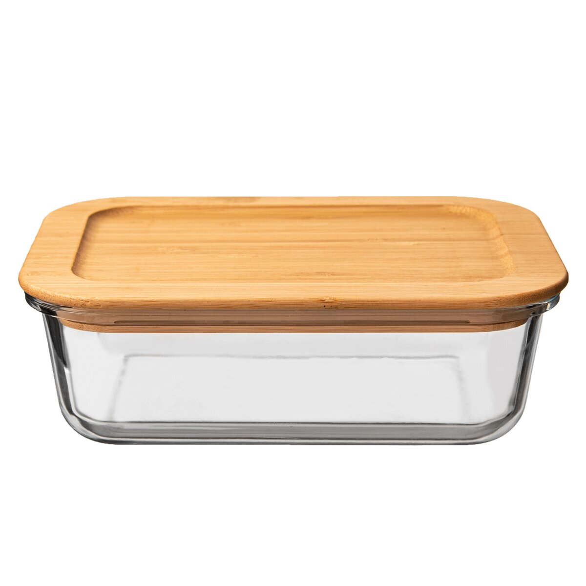 Kód produktu 127547Obdélníková dóza z borosilikátového skla o objemu 0,6 l, s bambusovým víčkem opatřeným silikonovým těsněním pro uložení, ohřívání i zapékání oblíbených pokrmů.