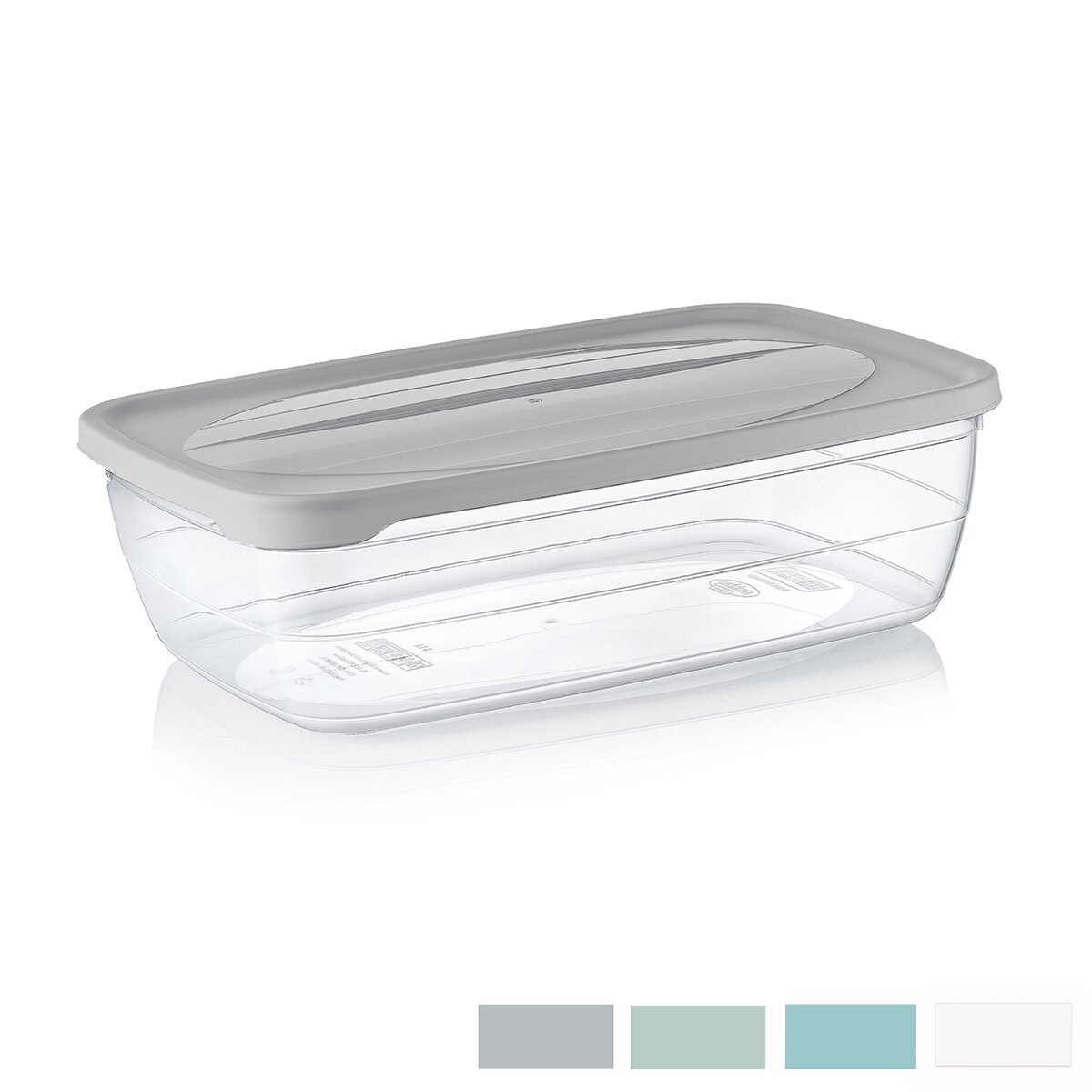 Kód produktu 124653Plastová obdélníková dóza TREND o objemu 2 l s barevným víčkem.